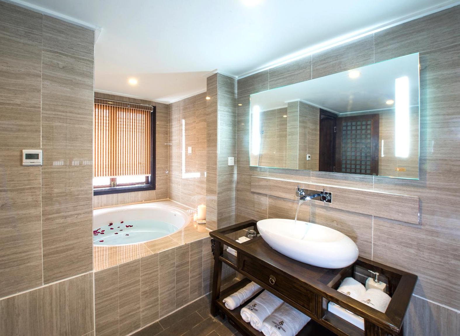 I have a very nice room, set up in traditional Chinese style, with a jacuzzi, separate shower, and terrace garden, W did not try the facilitates since we went to Shangrila the same morning. The staff books a private transport to Shangrila on separate fee. We did not come back to the hotel till late at night and that was the only time I walked around Shuhe Ancient town where the hotel was. The winter was cold and my husband stayed in the hotel room only.