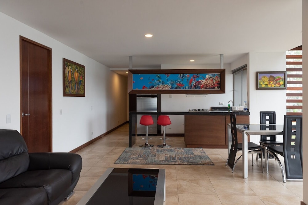Just a 4-minute walk from Peñol-Guatapé Reservoir, our cabin is perfectly situated near key attractions such as the Rock of Guatapé and beautiful recreational parks.