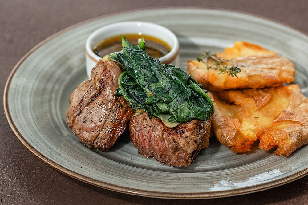 Savor delicious meals at our on-site restaurant, or opt for room service during limited hours. Start your day right with a complimentary continental breakfast served daily from 8:00 AM to 10:00 AM.