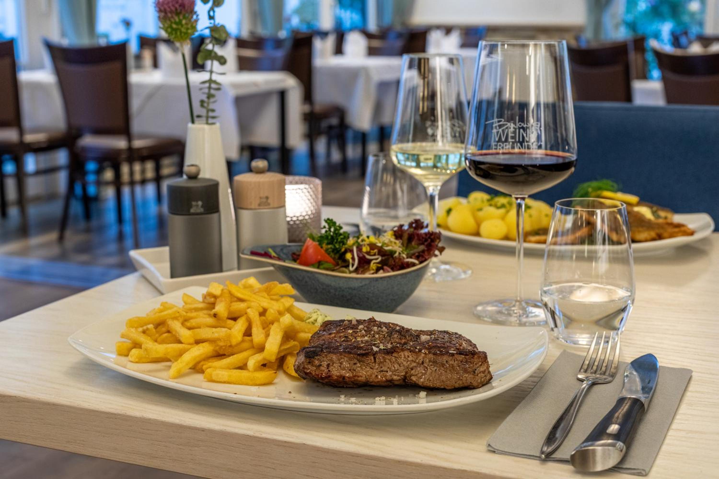 Indulge in a culinary experience at Bülow's Steak Restaurant with its antique furniture and traditional décor. Enjoy fine steaks, fresh seafood, and vegetarian dishes, complemented by a selection of whiskies and cocktails in the garden lounge or on the sun terrace.