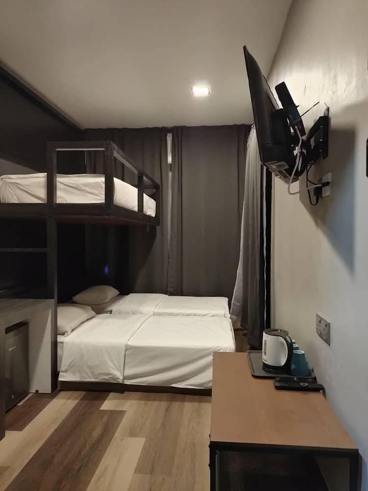 Very calm and cozy stay. The indoor activities provided are variety. You can choose which suits you. The beach is not that interesting but the pool is. The air ventilating fan in the bathroom was not functioning made it quite smelly. The room is too narrow for 4 adults but the balcony is big enough for everyone to hang out. Very limited space to pray in the room but there is surau at the lobby. Overall, I like the kabin for their cozy environment and helpful staffs.