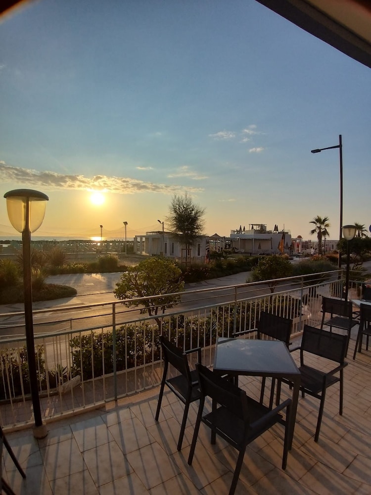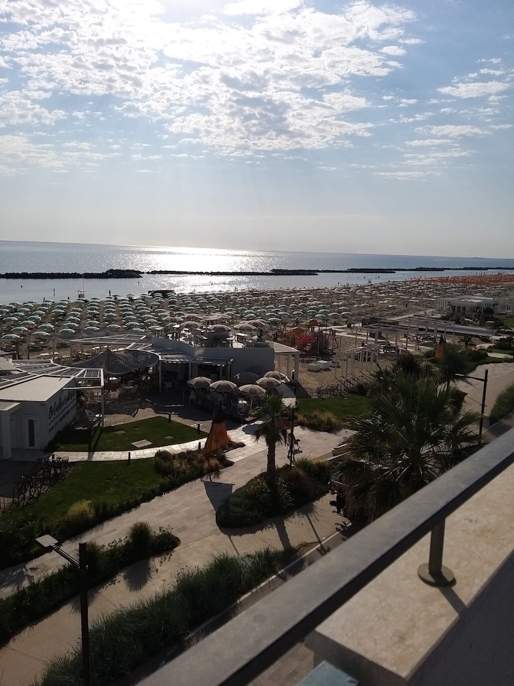 Camera superior molto piccola , impossibile muoversi in due, lavandino scomodissimo, doccia molto piccola e soprattutto mancanza di frigobar, balcone fronte mare molto piccolo con due sedie ma impossibile sedersi in due. Tavoli esterni colazione gradevoli con vista spiaggia