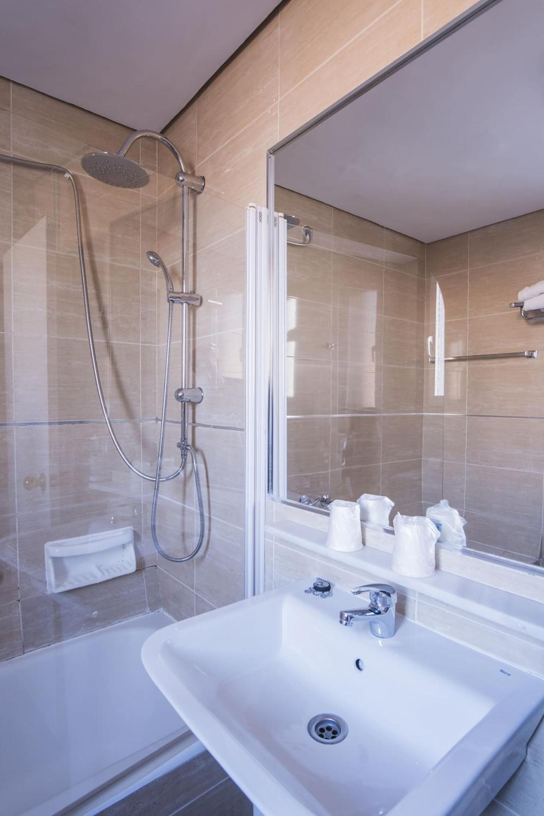 The hotel provides well-equipped rooms with essential amenities like a desk, TV, and private bathroom, ensuring a cozy stay for all guests.