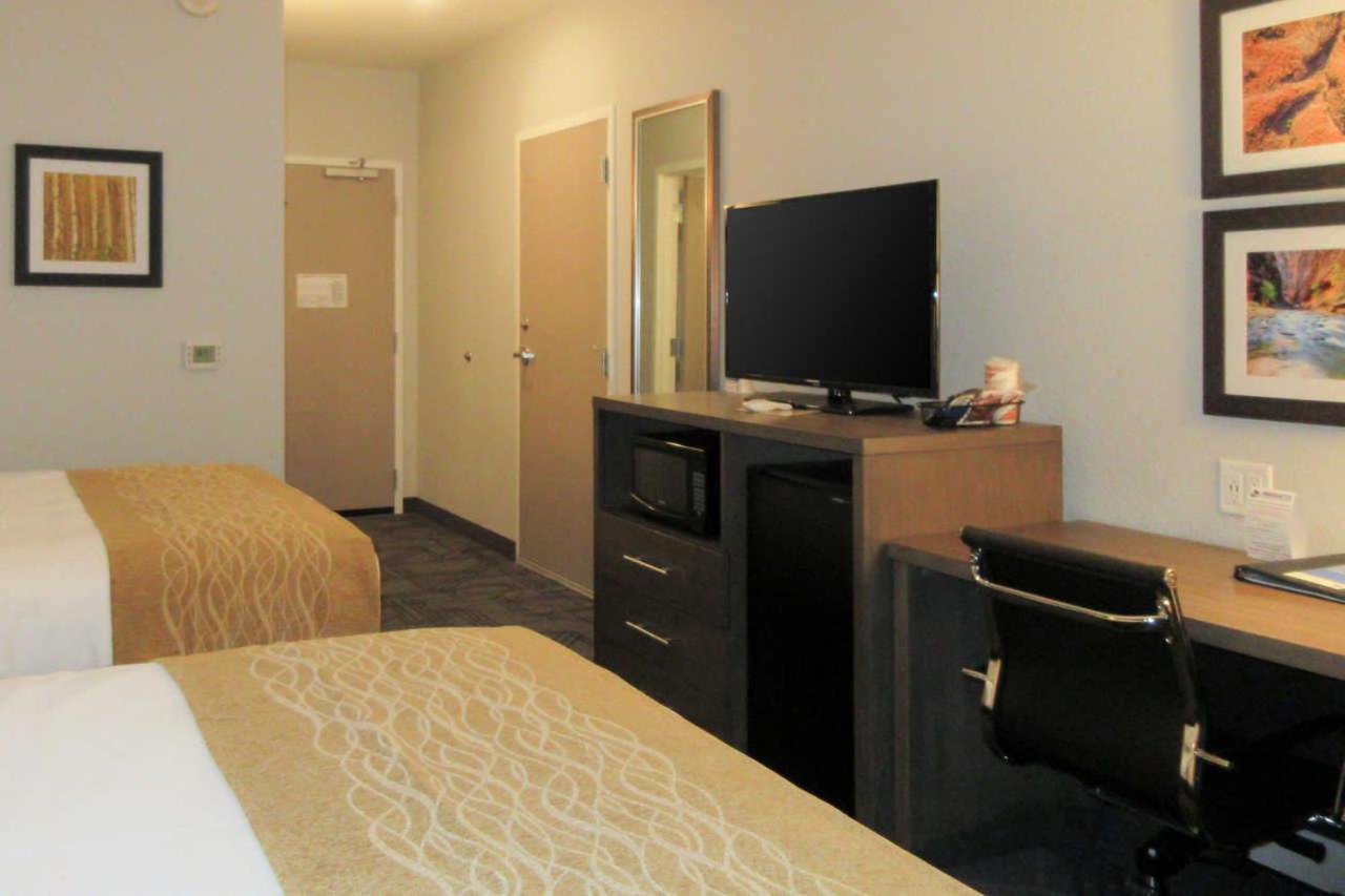 In the room, the vent fan in the bathroom sounded like a blade was bent, and even with it off, periodically it would make a clicking sound. There were two long black hairs in the bed, the air conditioning unit did not work properly… When I set it on 69° it was freezing and went I turned it up to 70°, it was burning up in there. The bathroom door did not open all of the way. The hook on the back of the bathroom door fell off. There was hair in the sink and on the commode seat. The chairs in the dining room were literally coming apart, and the eggs for breakfast were sitting in a soup, which was really gross. Cash and Heidi were very polite but the woman that checked me in and the woman that checked me out were very rude. My daughter-in-law‘s smoke detector started going off/chirping, and when a maintenance man came to fix it, he brought the wrong batteries and never came back with the correct one. Her room was damp and very dirty, especially the bathtub. The pool was disgusting! It definitely needs chlorine added, and to be shocked, it was so cloudy you couldn’t even see the bottom. There were no towels, and we had to ask the front desk for some. I was extremely disappointed and will be visiting KC very often, but will not return to comfort Inn and suites at this location.