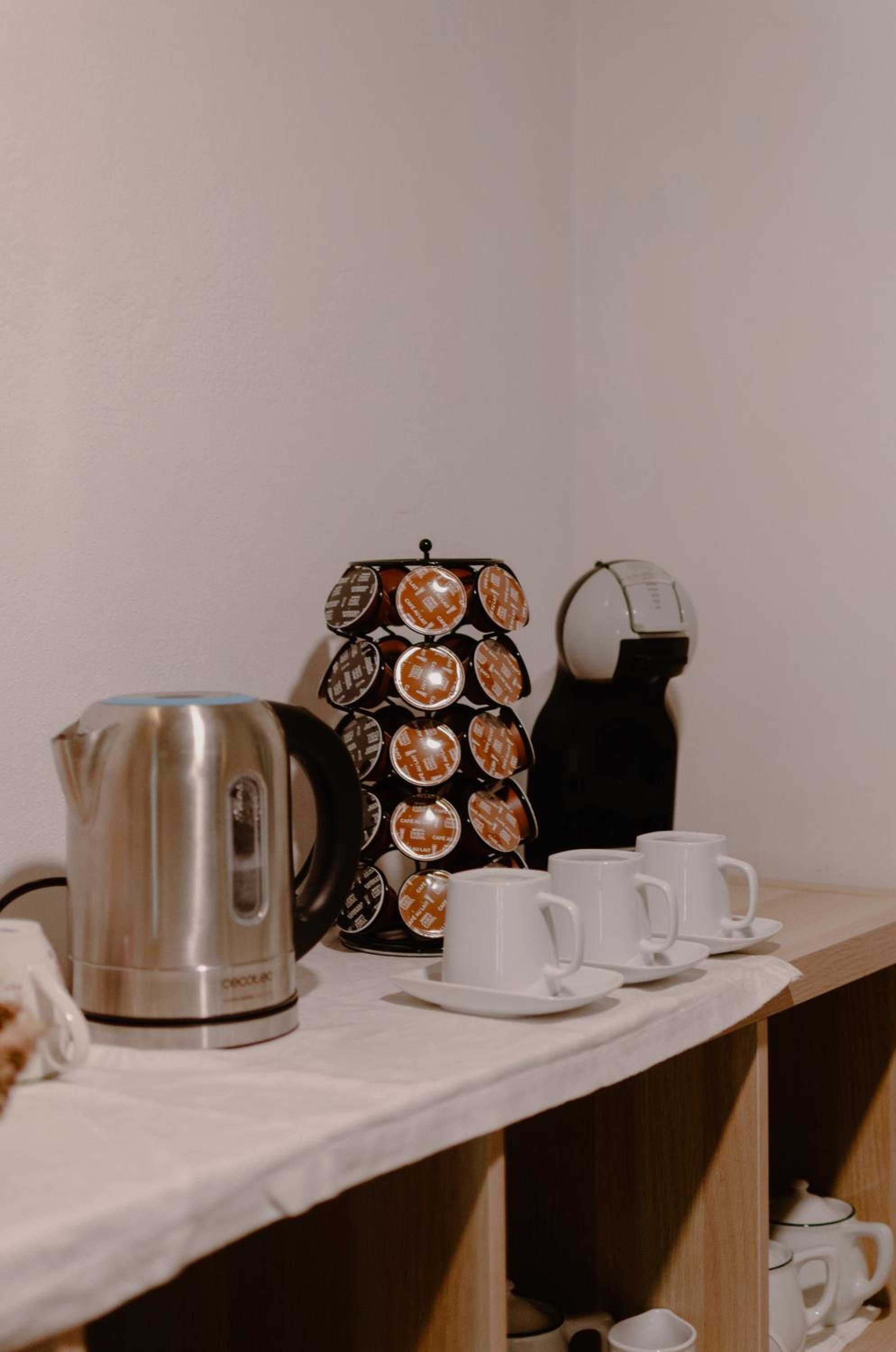 Comfortable Rooms: Each room at our hotel features a kettle for your convenience. Enjoy the modern amenities including a private bathroom with a shower, hairdryer, and complimentary WiFi. Rest peacefully on our cozy bed with quality linens.