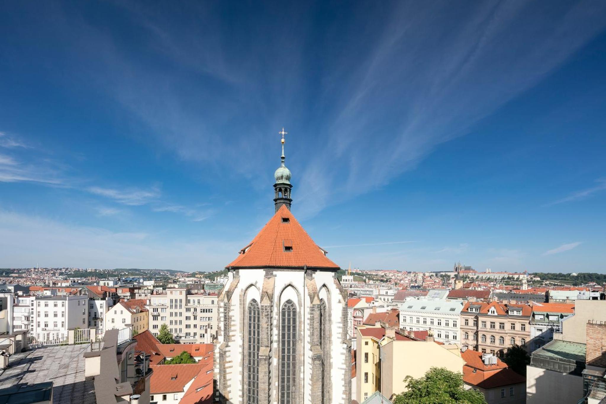 Indulge in the luxury of modern design rooms at Pytloun Boutique Hotel Prague, each offering breathtaking views of either Wenceslass Square or the serene courtyard overlooking the Franciscan Gardens.