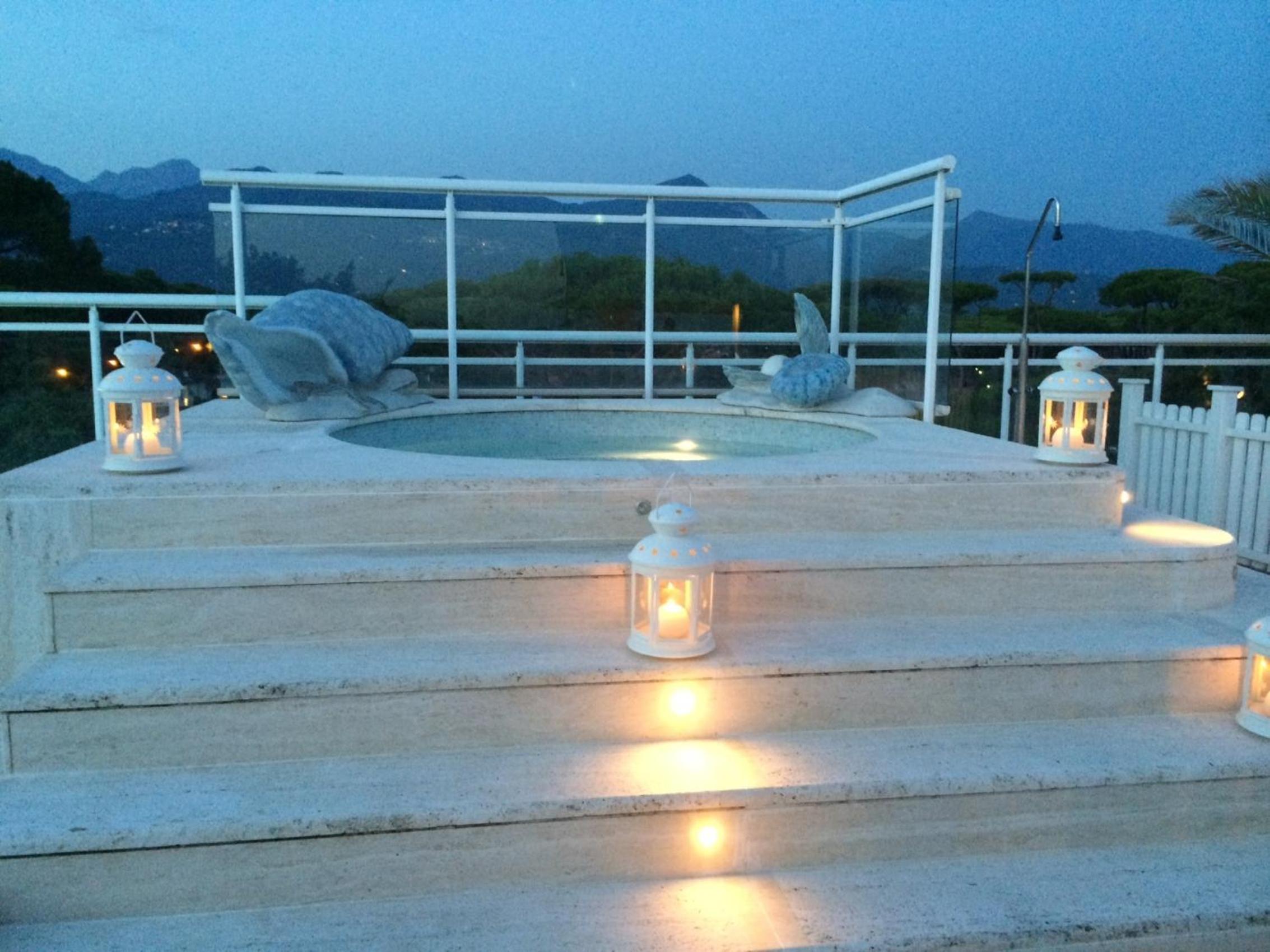 Indulge in the roof-top hot tub, swimming pool, and unique roof terrace with stunning views of the Mediterranean Sea at Hotel Villa Marzia.