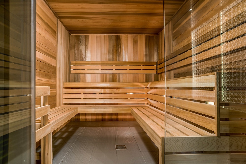Indulge in a sauna, fitness center, and outdoor pool