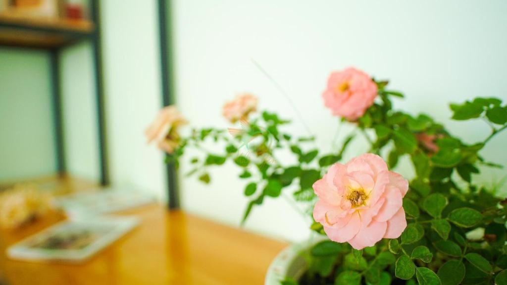 Perfect flowers in the room, simple cozy style. All we needed were there.