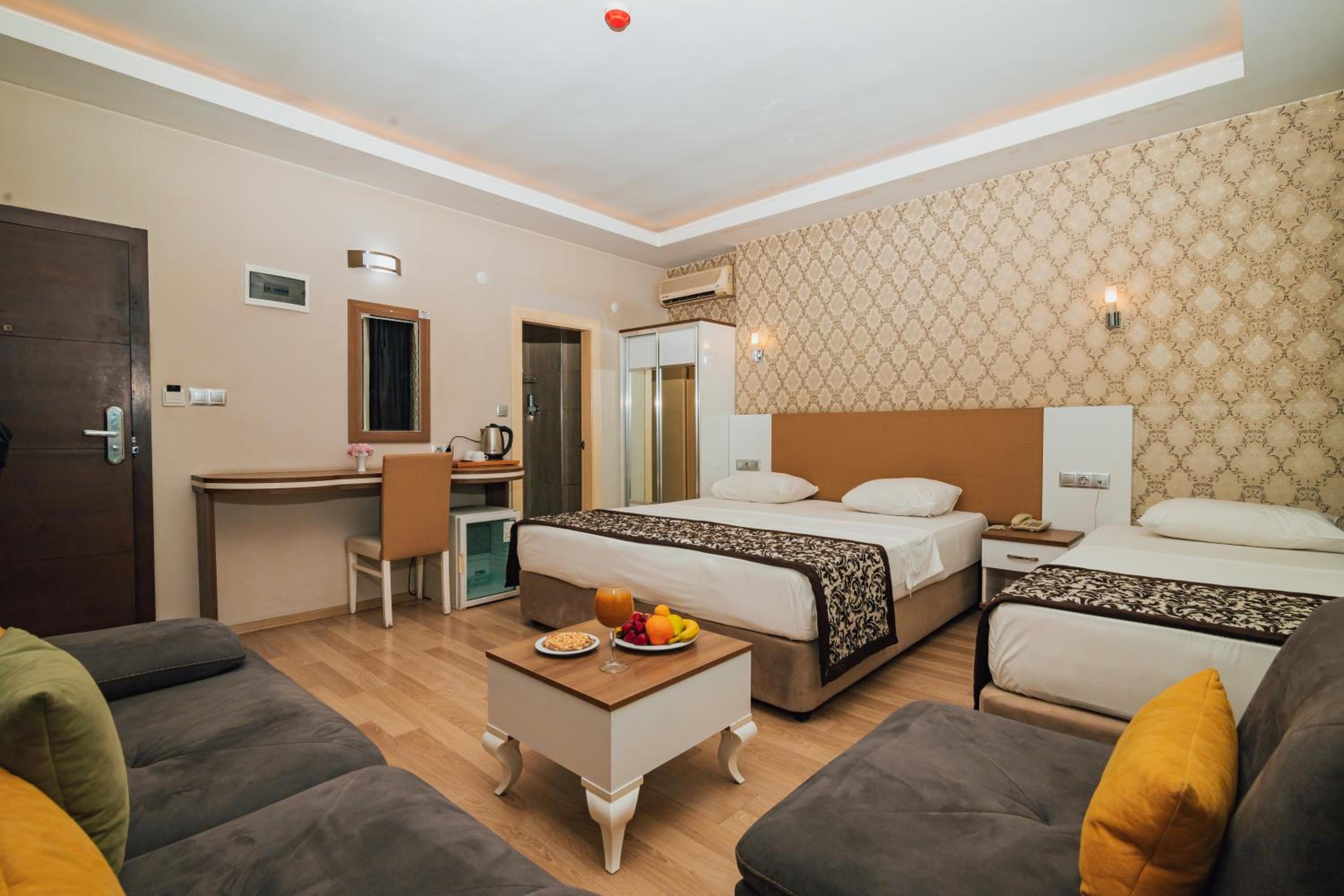They say it is a 3 star hotel, but I think it is a 2, maybe a 1 and a half star, hotel. The rooms are ok, but it is supposed to be a bed and breakfast stay, the first morning I went to get breakfast and it is such a poor open buffet, but 7:00 am they ran out of tea!! On another occasion, I went at 7:30 and some trays were literally empty! I was having my breakfast and just paused to have a few tea sips, when the waiter came to collect my plate, there was still food on my plate, I kept telling him I was not finished ‘in Turkish’ but it took him a minute to understand! Also, they need to clean, and I mean clean the rooms! The first night when I came back from our tour, they did not enter the room, it was the same, so no cleaning on my first day! The next day, I went to the reception and said ‘the room needs to be cleaned’ when I came back, the bed was made, yes, towels were changed, yes, but I don’t think there was any kind of cleaning, because the hair I left in the sink in the morning was still there. So they need to do a much better job. I forgot to mention the small curtain that does not cover the whole window. Won’t go there again.