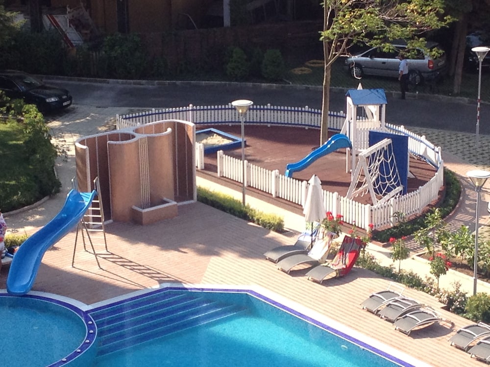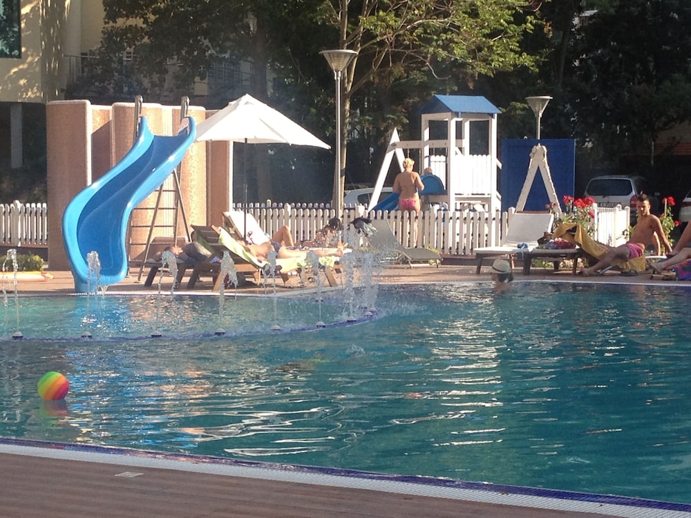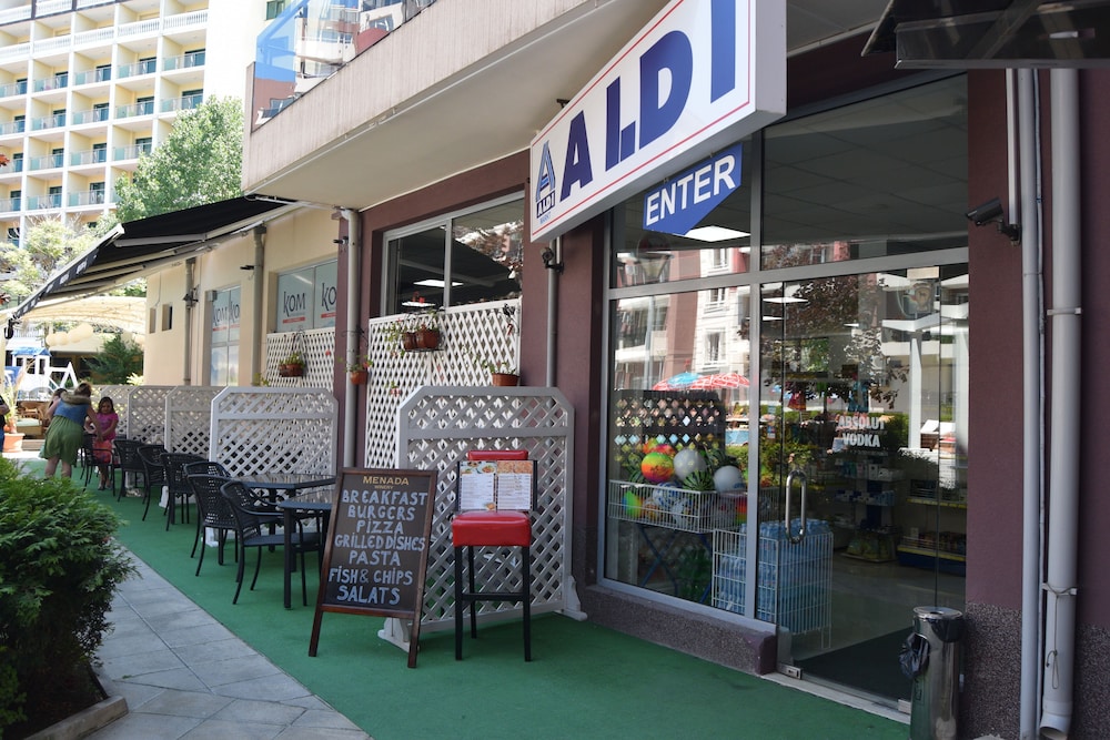 Pool area bar next to it and supermarket was great! Allso downstairs restaurant was close and food was good. They allso show Sports and tournaments in restaurant and we watch F1-race there.