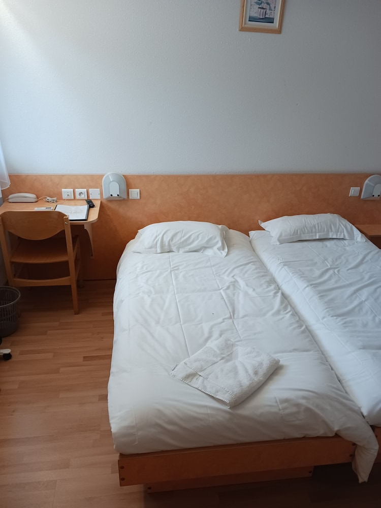 Hotel simple, chambres qui auraient besoin d'un coup de rafraichissement mais nous avons bien dormi. Silencieux, accueil agréable et très sympatique nous avons pu mettre notre moto à l'abri dans le garage que nous à prêté généreusement la dame de l'accueil. Petit déjeuner copieux.