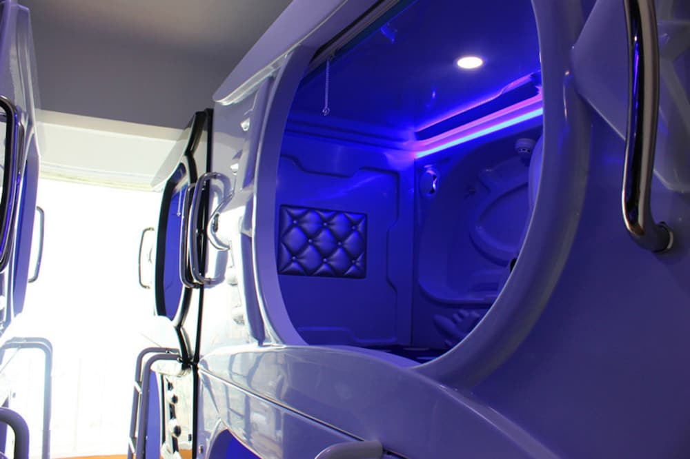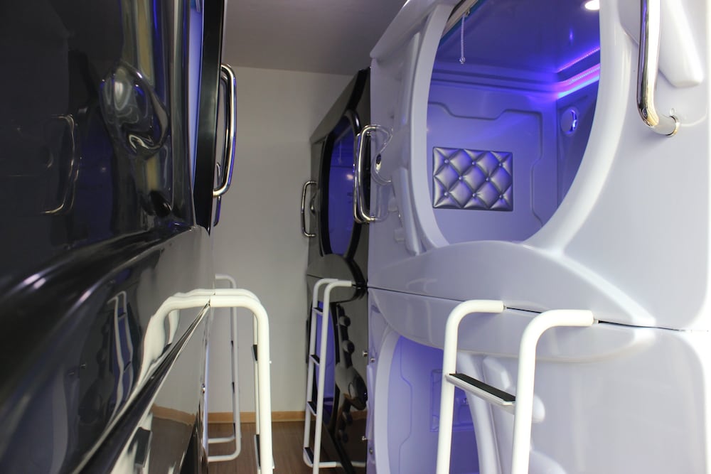 予約確認出来ないのもわからん。Expedia に電話するなんて言い始める。カプセル内はそれなりにくつろげるがマットレスがペラペラで身体が痛い。トイレ&シャワーも共通で一個。ここはないわ!