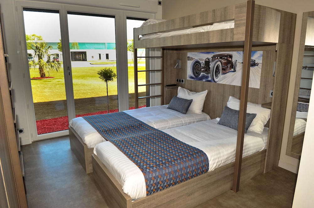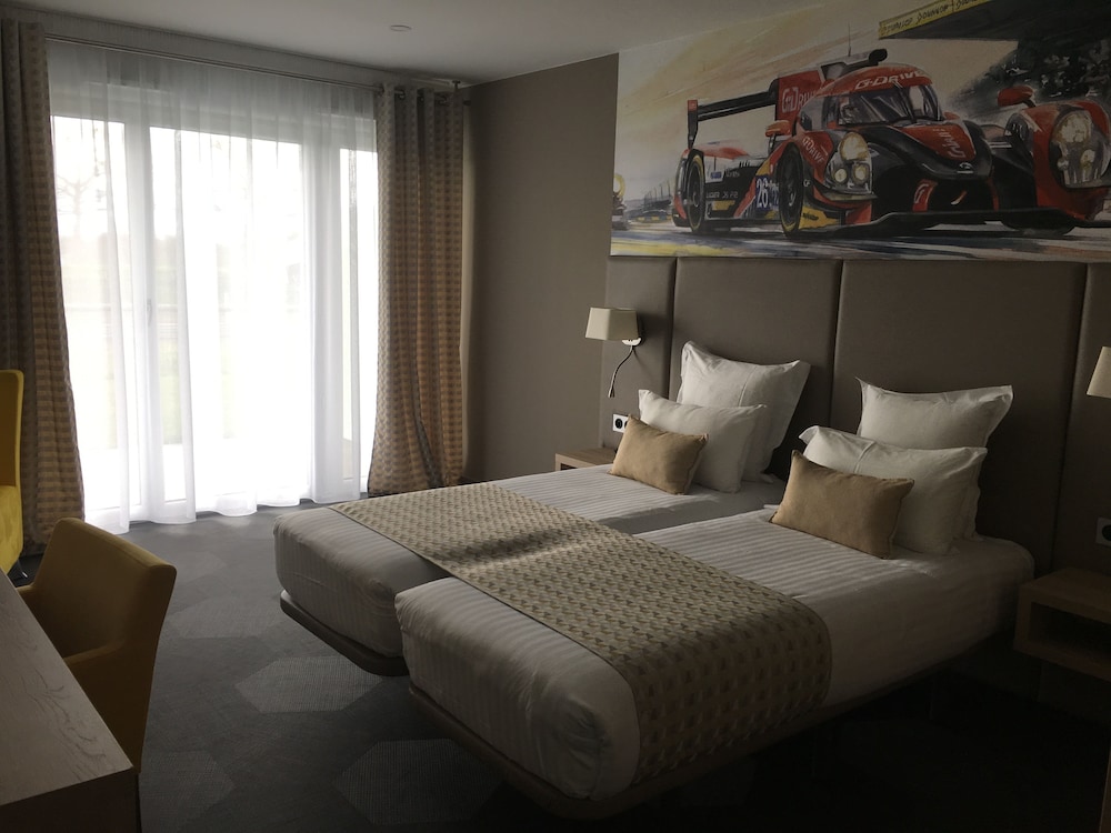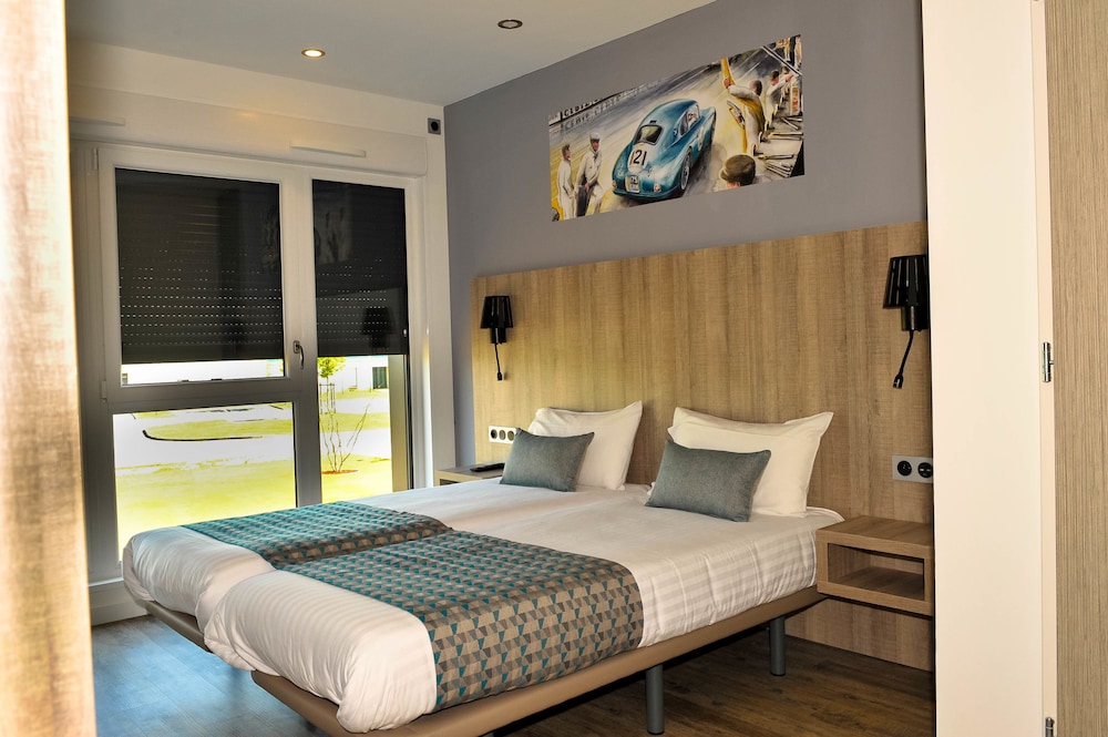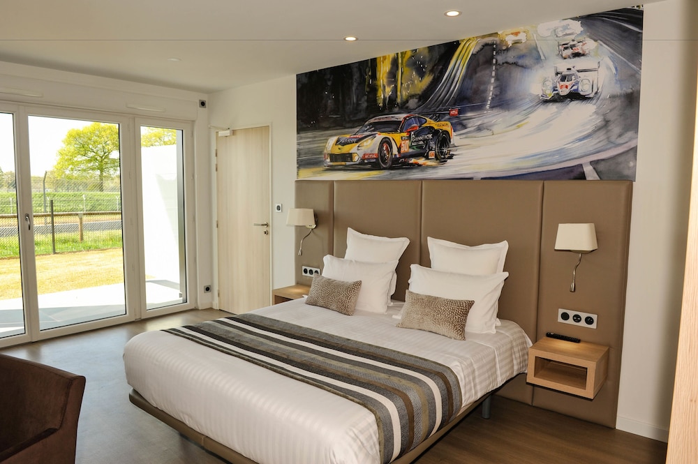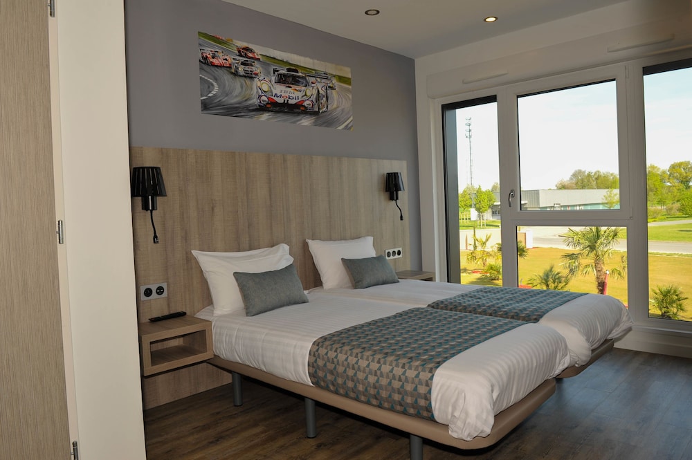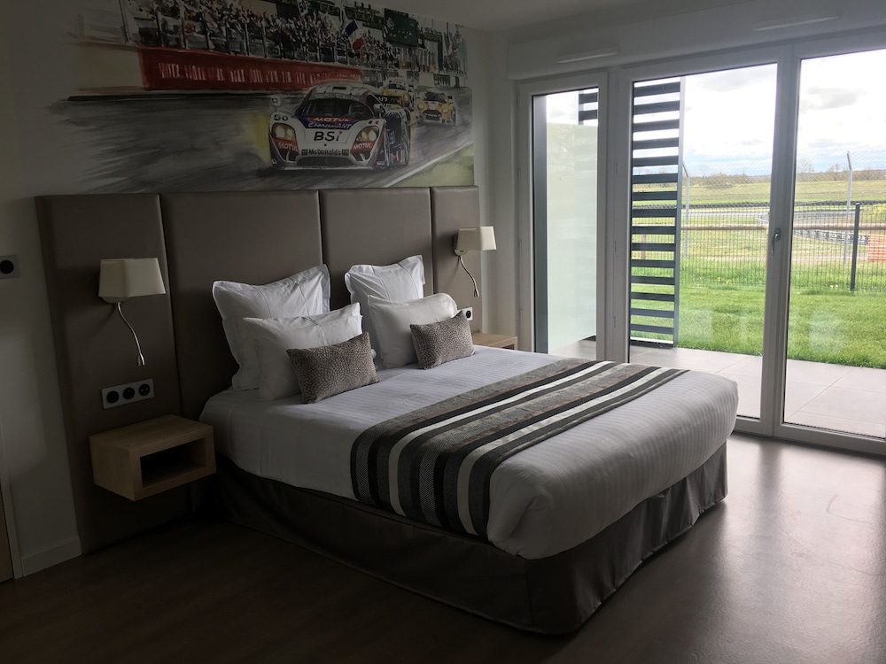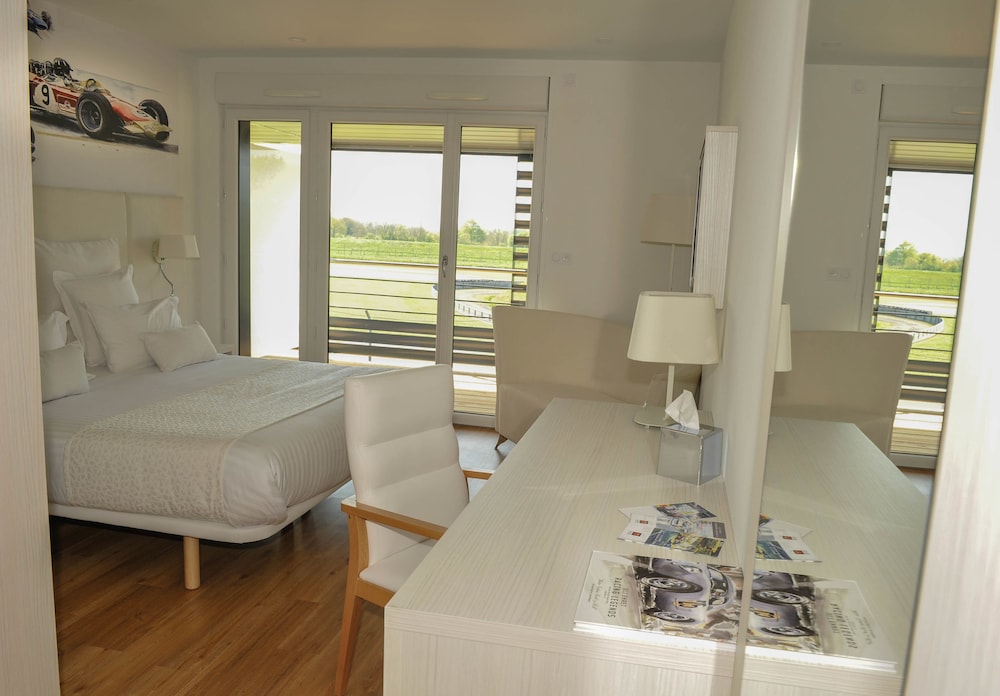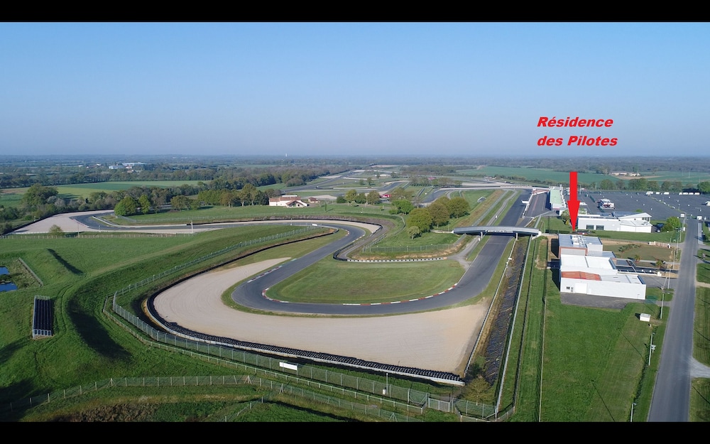 Hôtel parfait avec vue sur le circuit, chambre spacieuse et bien décorée, plus un salon de jardin privé. Idéal pour suivre mon mari qui fait des roulages moto sur piste.