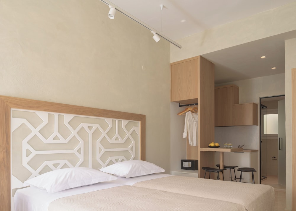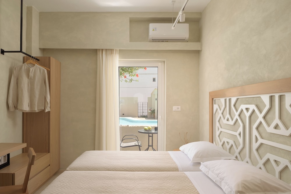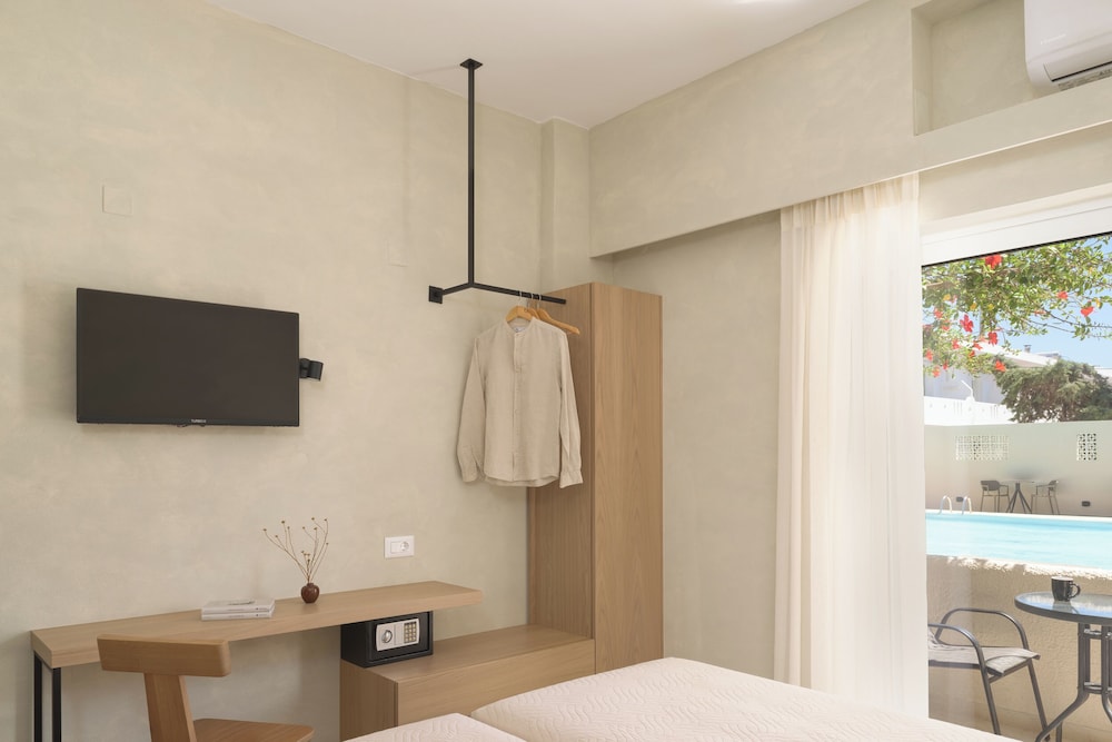 Hotel looks great on website, but my delux room was tiny. There was hardly room for our two suitcases. The property was clean and well maintained, decent pool and small sun lounger area. Close to amenities and nice restaurants. I’m now in Agios Nikolaos and my room is 4 times the size and half board for around the same money!