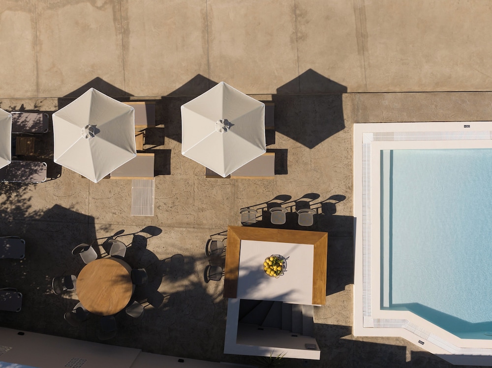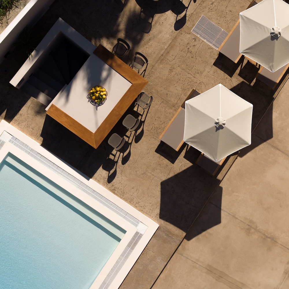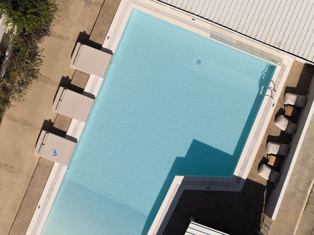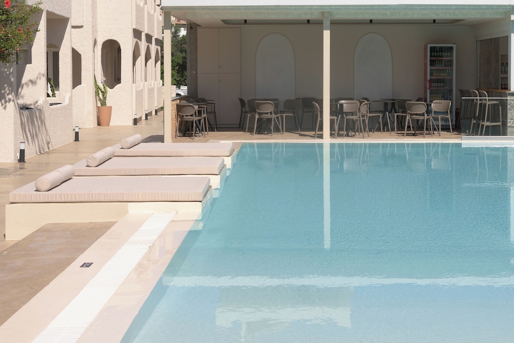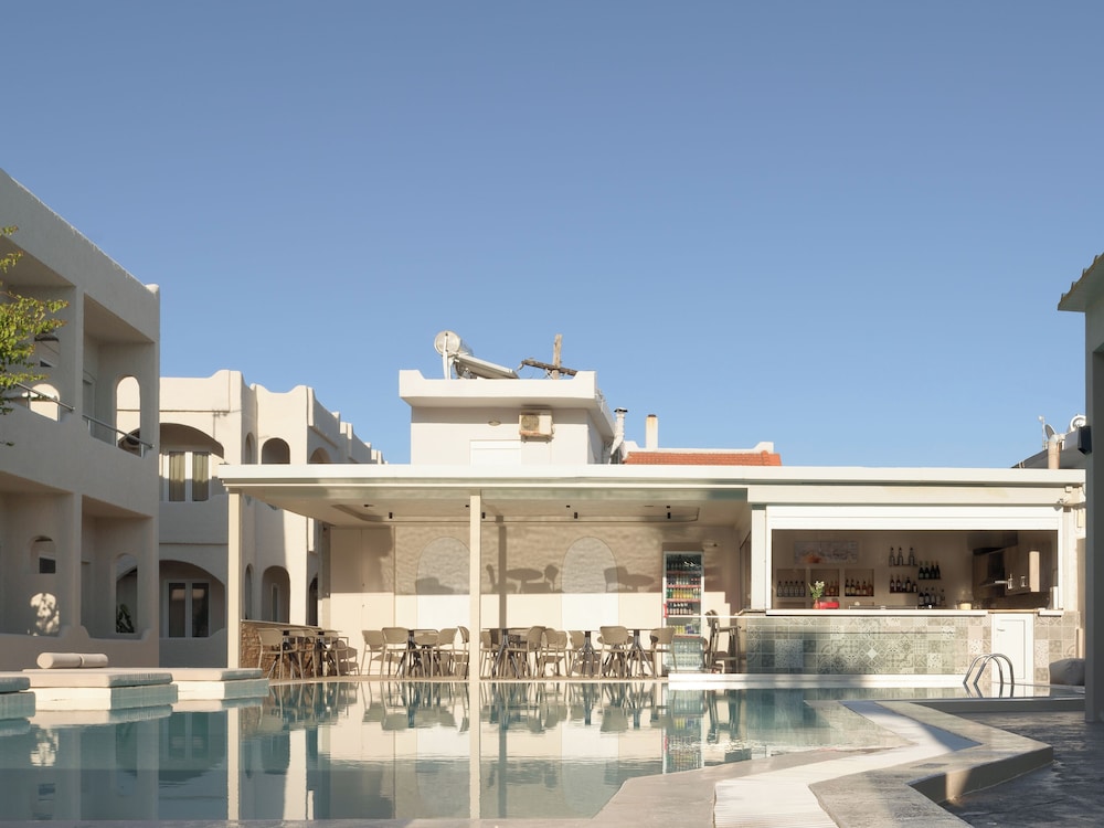 Enjoy the outdoor pool and garden at Apollo Philoxenia for a relaxing stay.