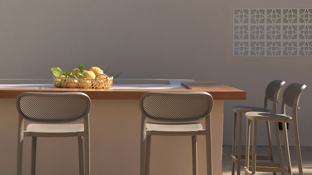 Close to centre, shops, restaurants, bars & main beach. Parking available. Friendly staff & cats. Check-in was great, considering we arrived around midnight. We were greeted well & quickly & effectively shown to our room & dealt with formalities the following morning. Room was cleaned every day upon our request and sheets & towels changed every other day. Large size pool & poolside restaurant & bar, the only downside was kids screaming in the pool right outside our balcony whilst their parents were chilling & residing on the other side of the complex/pool and did or felt nothing that other guests might like some ‘chill-quiet’ time to enjoy their personal balconies in the AM/evening... :-/