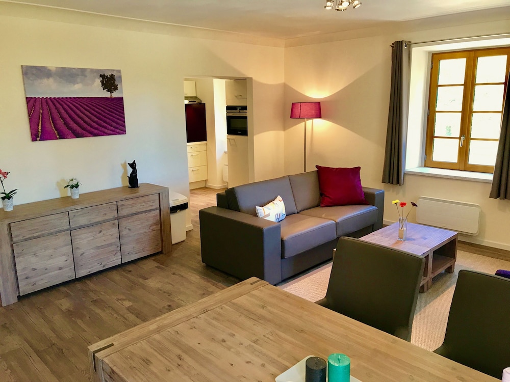 Très agréable séjour dans ce château rénové avec soin, l'appartement était spacieux, très propre, cuisine très bien équipée, jolie vue sur les champs, très calme. La piscine est agréable et le jacuzzi avec vue est tout simplement exceptionnel ! Petit-déjeuner copieux et hôte chaleureux, tout était parfait !