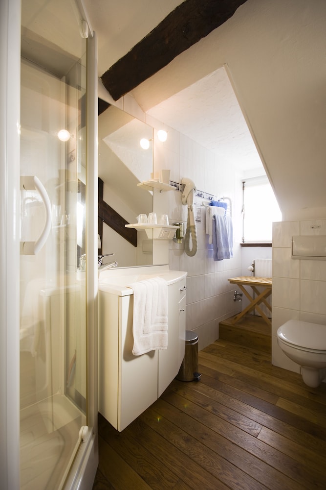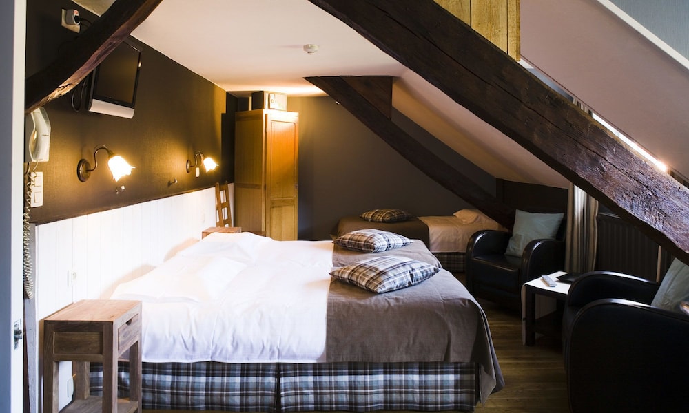 Geweldig mooie en ruime kamer, wij hadden wel geen standaardkamer, die zijn een pak kleiner denk ik. Een mooi bad met ingewerkte regendouche. Alles was heel proper bij aankomst. Een salonnetje met grote leren zetel en tv aan de muur. Heel stil om te slapen, geen enkel lawaai. Beneden mooi restaurant en salons met open haard, vooral in de winter heel gezellig denk ik. Het eten in het restaurant was heel lekker. Het enige minpunt voor mij was het ontbijt : de kwantiteit was er maar de kwaliteit was niet goed : slecht fruitsap, warme chocolademelk van smaakloos poeder, afbakkoffiekoekjes en afbakstokbrood dat dan zelfs nog niet genoeg afgebakken was, hesp met een zurige smaak, fruitsla die niet vers vers meer was; Spijtig en onbegrijpelijk aangezien de kwaliteit van het eten in het restaurant wel top was,