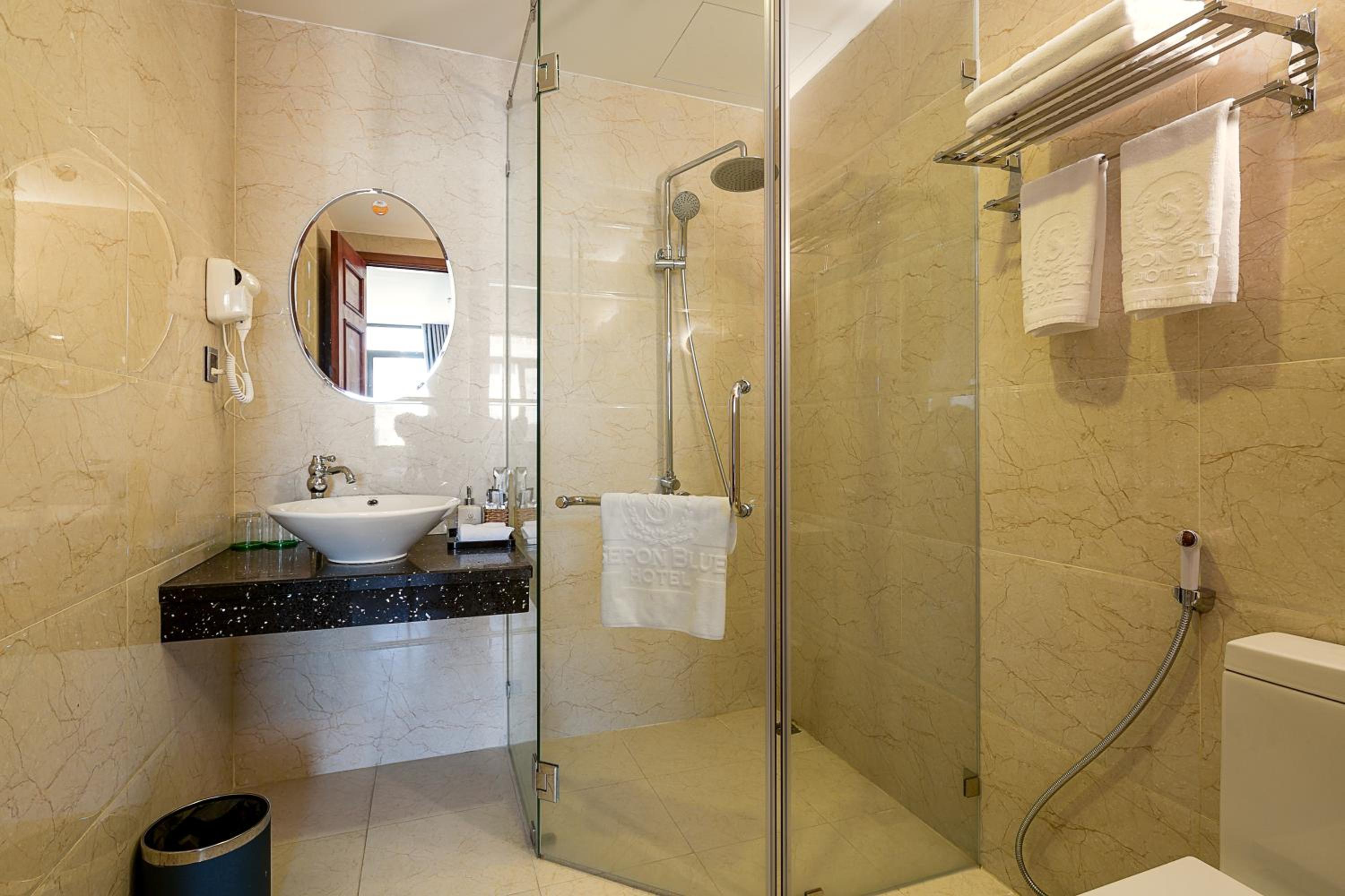 Located in Da Nang, Sepon Blue Hotel offers a 4-star experience with an outdoor pool, shared lounge, and terrace. Indulge in Asian cuisine at the on-site restaurant and unwind at the bar. Enjoy modern amenities such as air conditioning, flat-screen TVs, and free WiFi in every room. Some rooms even boast sea views and private patios. Wake up to a delicious buffet breakfast before heading to nearby My Khe Beach or Bac My An Beach. With a 24-hour front desk, airport transfers, and room service, your comfort is our top priority at Sepon Blue Hotel. Experience Tranquility by the Sea Book now for an unforgettable stay!