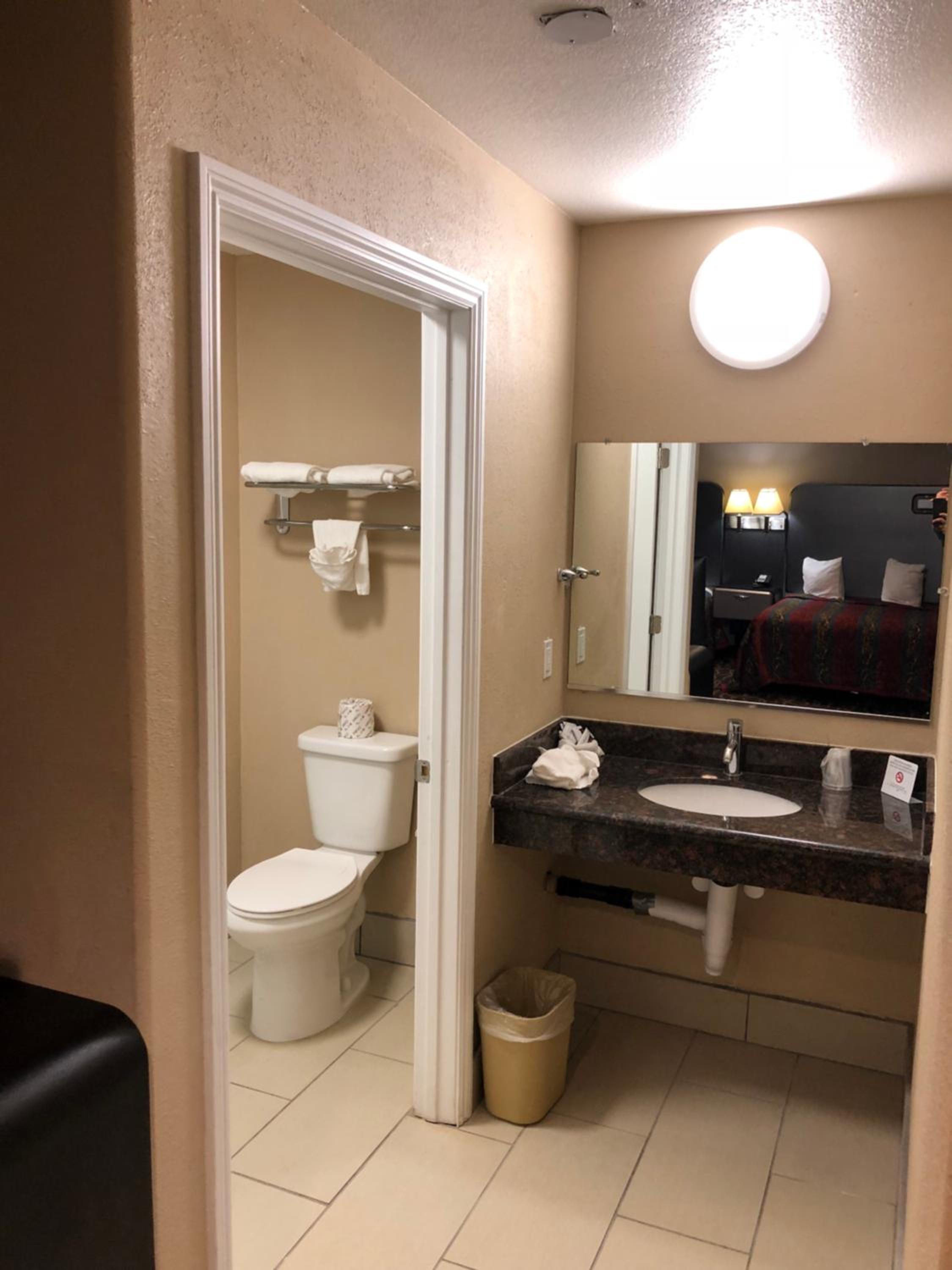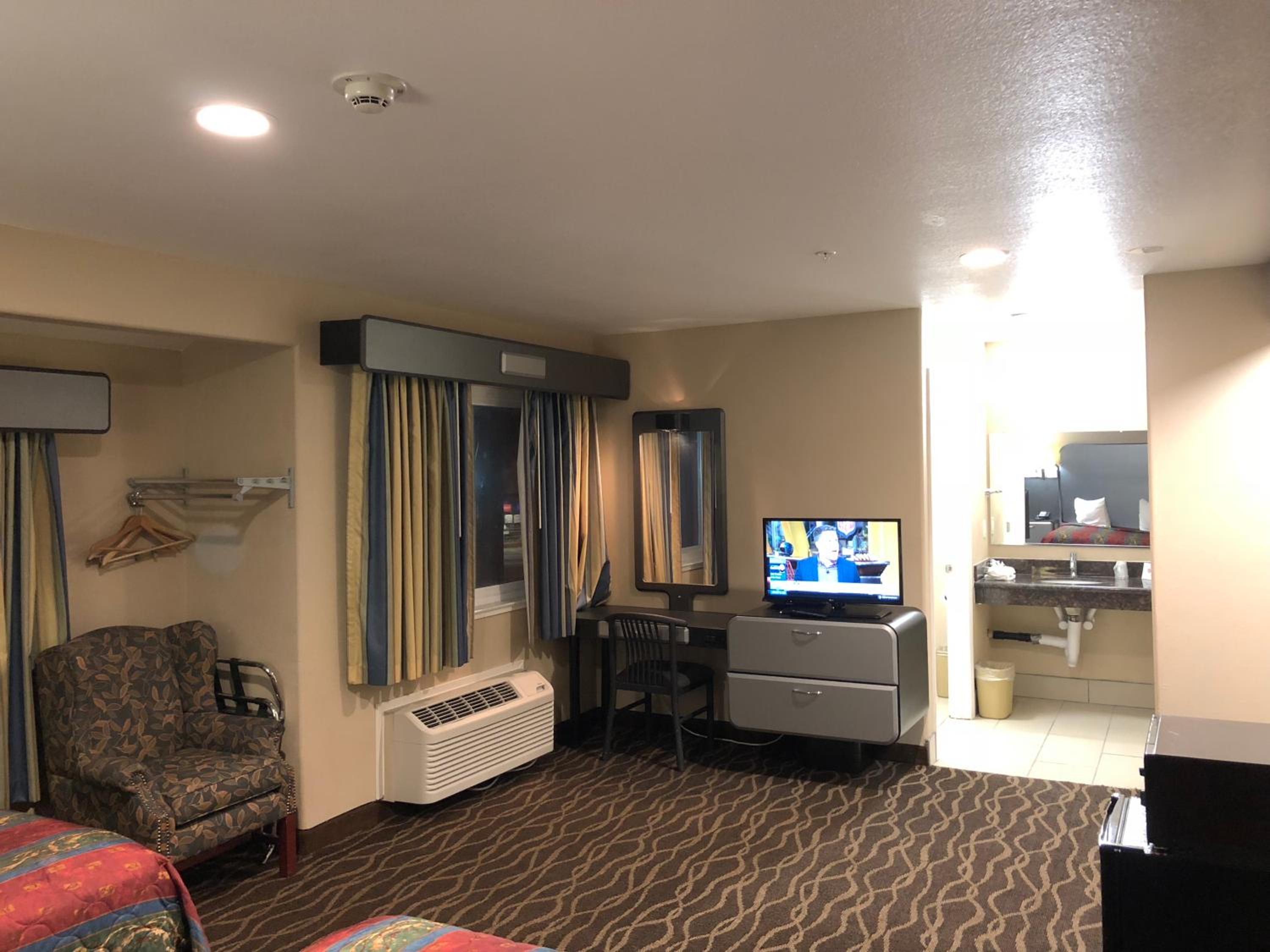 The room was disgusting, the air conditioner had a thick layer of dust that I cleaned off myself (everywhere was just dirty. There would be potential if the rooms actually got cleaned thoroughly). The walls were filthy, the floor was disgusting. I was so nervous my son was going to get into something bad... its way over priced for the quality. The older gentleman at the front desk was nice when I arrived at night to check in, but when I checked out a day early, the younger gentleman wasn't accommodating at all and there was HUGE roach in the lobby as I was exiting.