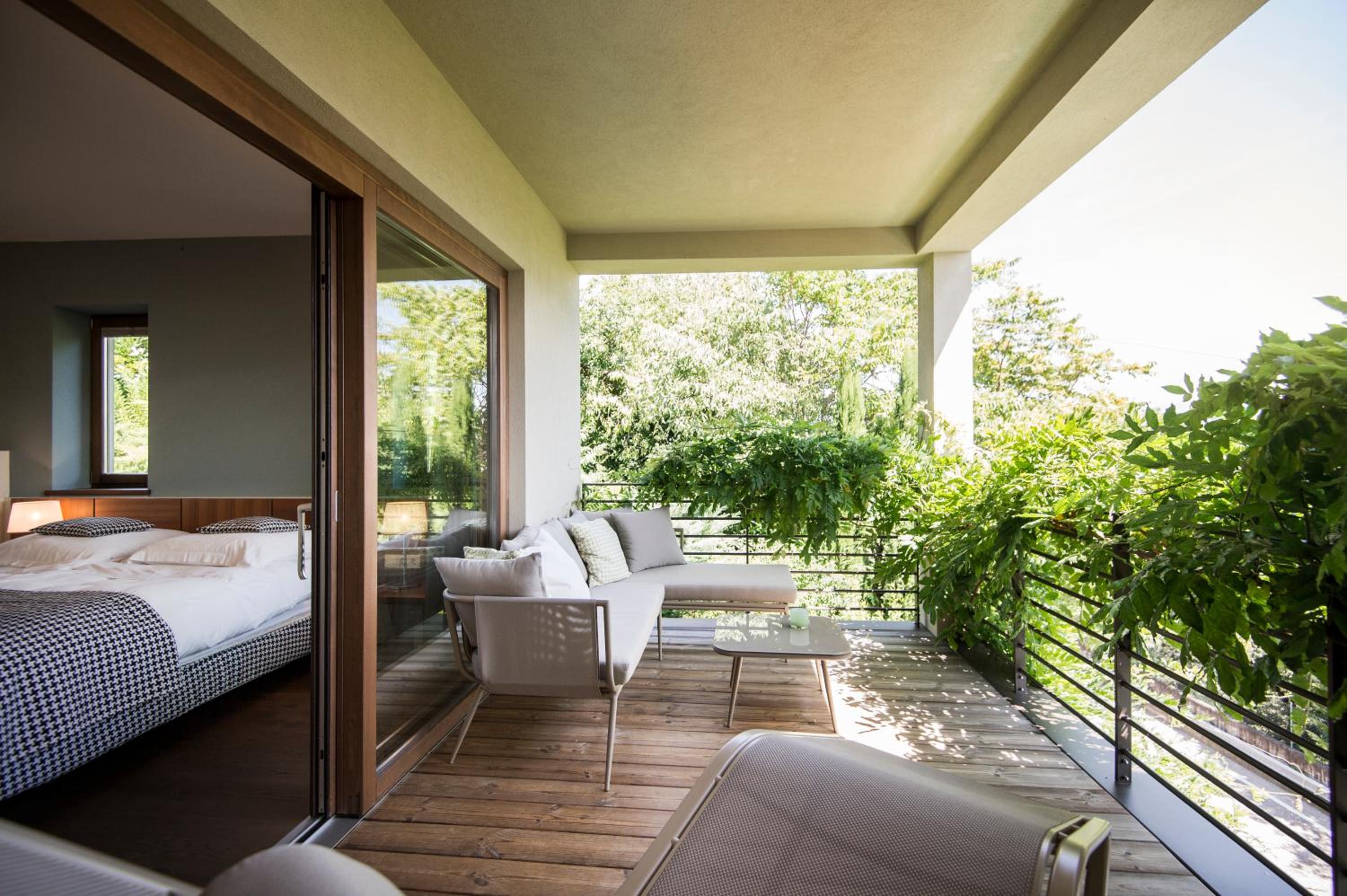 Designhotel Gius La Residenza, nestled in the picturesque vineyards of South Tyrol, offers unique suites with hot tubs and private balconies or terraces. The rooftop terrace provides breathtaking panoramic views, perfect for relaxation and enjoying the surroundings.