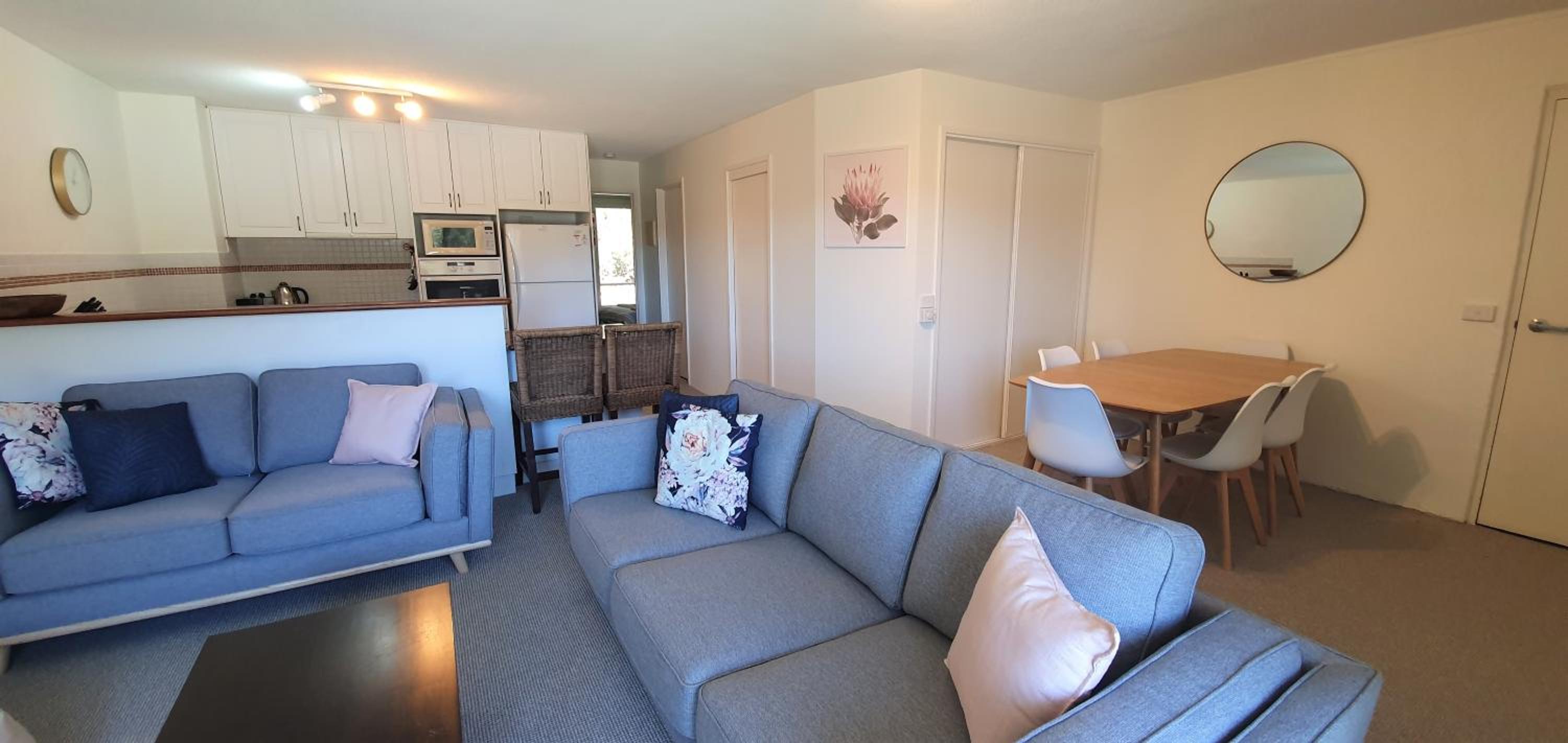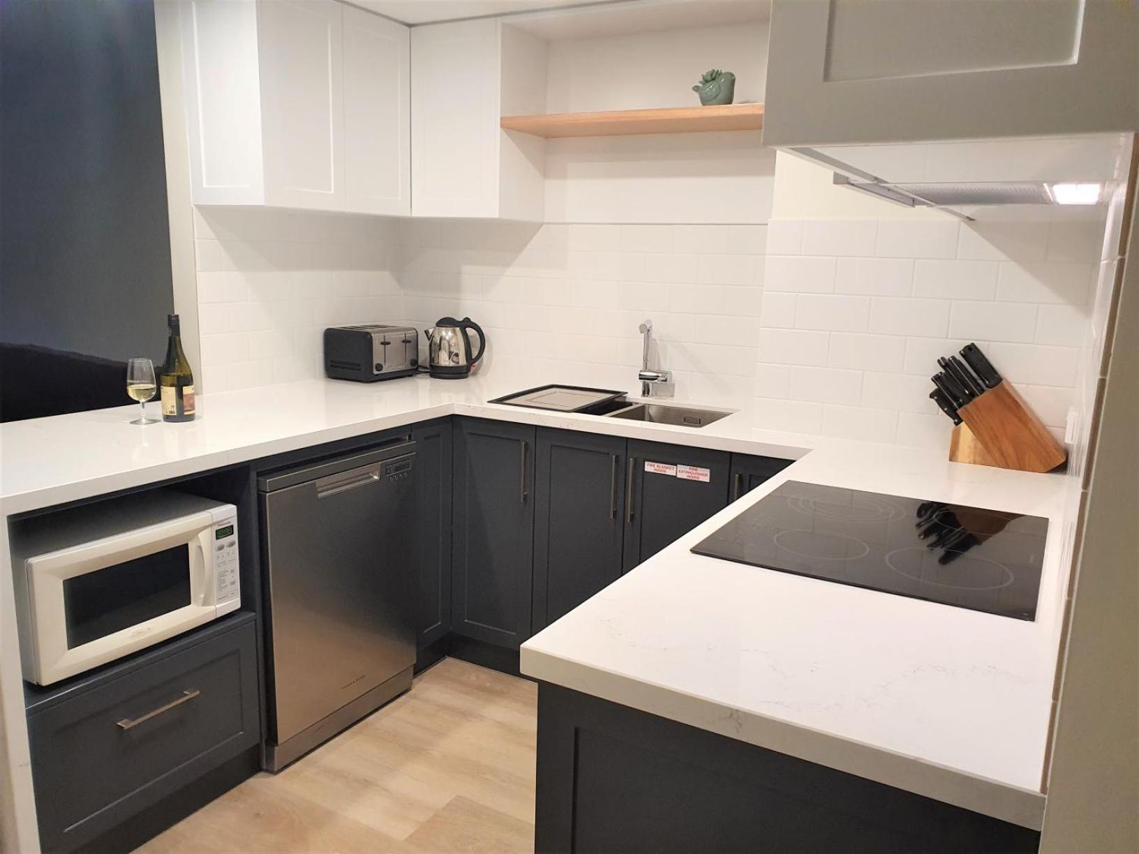 The kitchen appliances were of a very poor standard for this quality/cost of accommodation. The dishwaher has a broken lock/handle and is very difficult to open, the oven door does not close properly therefore the oven temparature was very slow, the microwave regularly power cuts out and needs to be switched back on at the switch.