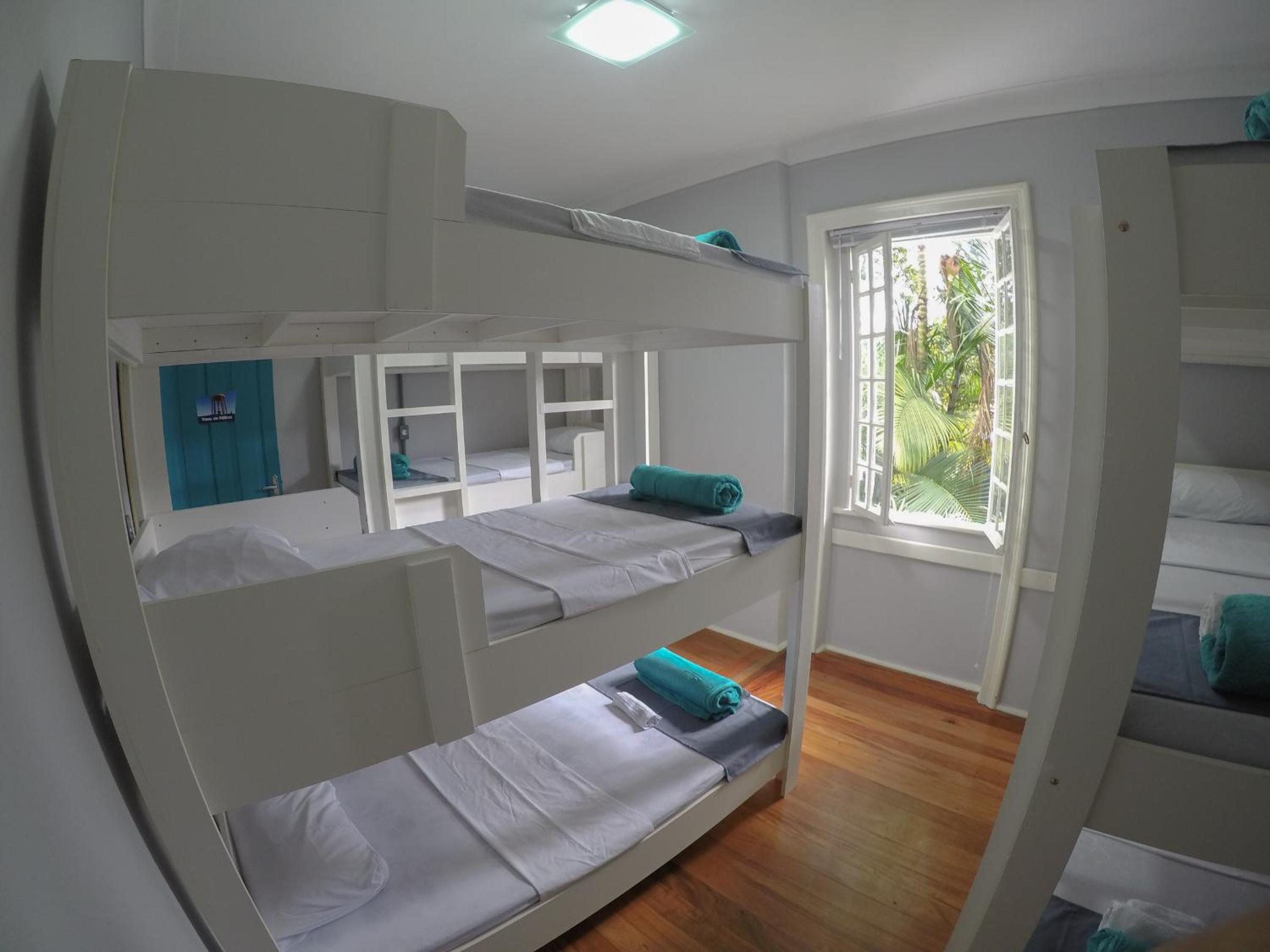 Quarto coletivo com camas confortáveis.