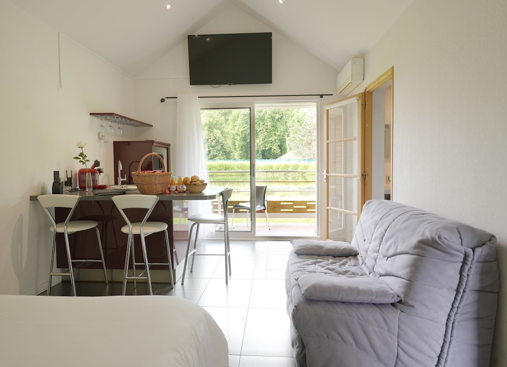 We were very impressed with the Hotel Sans Val'Eau, a nice spacious chalet next to the pond, an ideal place to relax with our dog after a long days travelling.