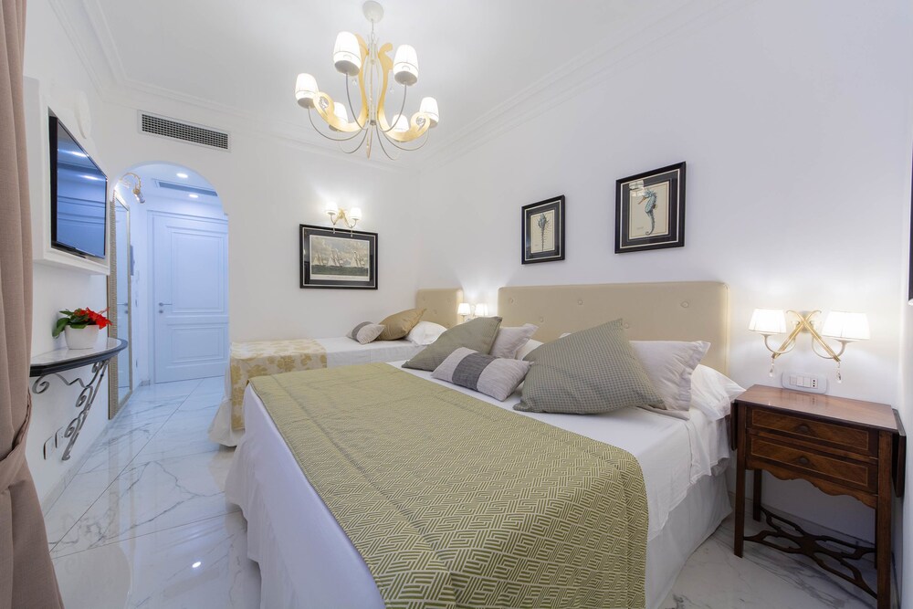 This hotel has one of the best views in the world. No exaggeration. The staff was wonderful and accommodating. The location in car-free Ravello is a 10 minute hike with lots of steps, which would be a challenge for elderly guests. The rooms where wall-to-wall marble, but the furnishings were worn-out and sparse. A couple thousand euros per room for new functional hotel furniture, mattresses and adding shelving in the bathrooms and closets would make this hotel a hidden gem.