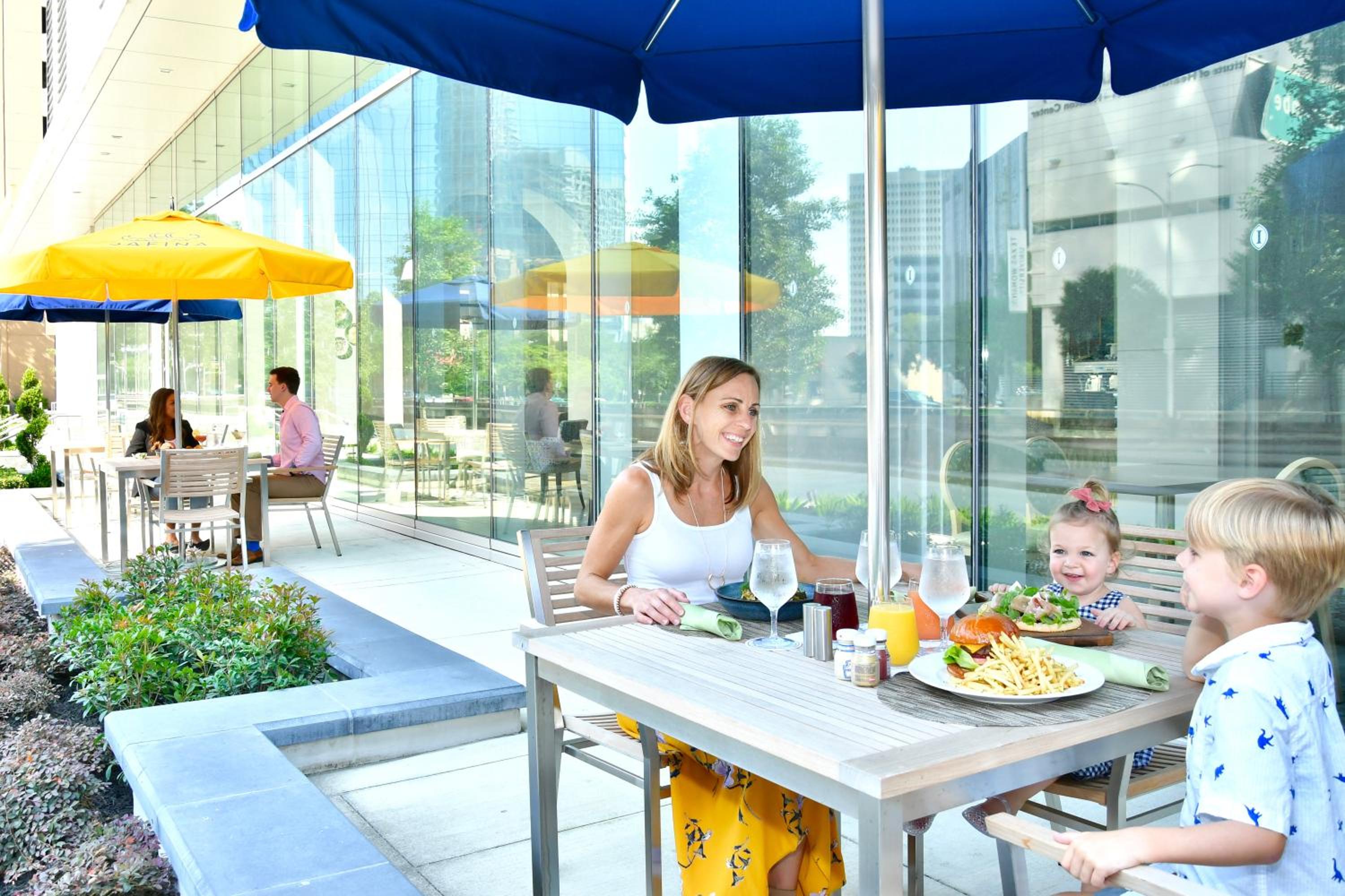 The bar area and the Restaurant feel and ambiance, perhaps due to the very high ceilings, are a bit dated and cold. Since many guests may be visiting also MD Anderson for treatment, a warmer, more soothing environ in color and especially light, may be great.