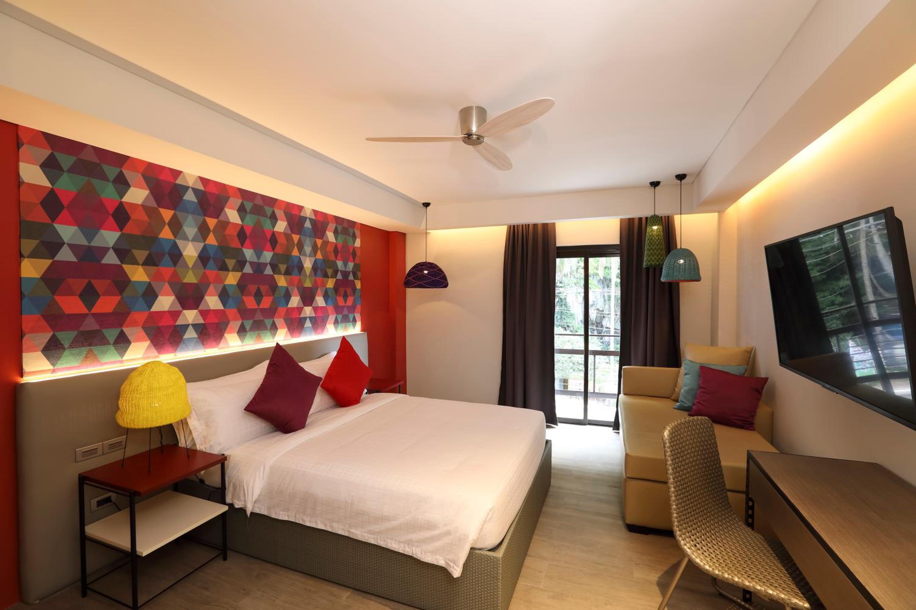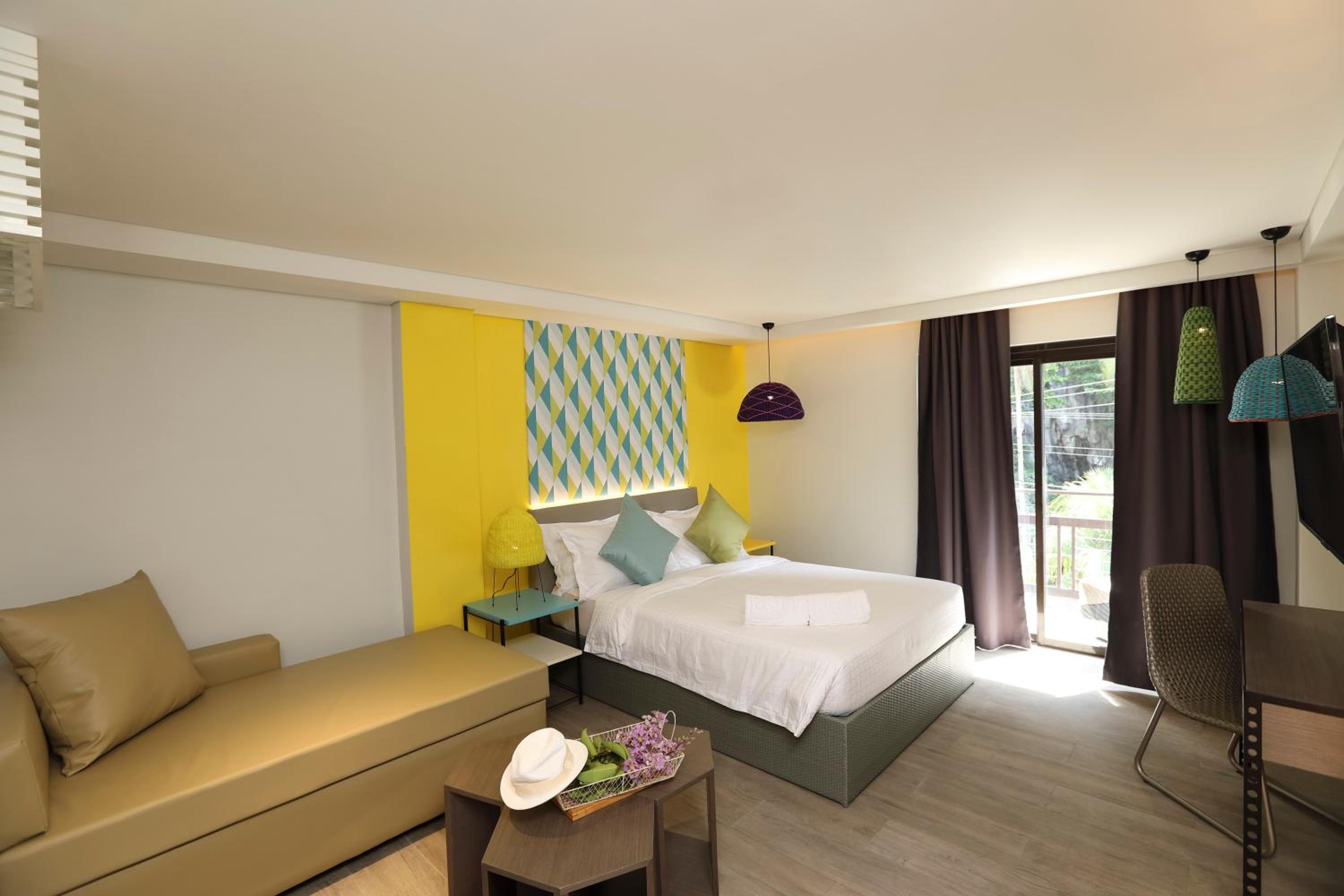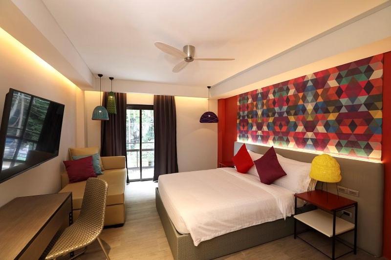 Indulge in comfort at Lagùn Hotel with spacious rooms featuring modern amenities such as flat-screen TVs, mini-fridges, and private balconies in select units.