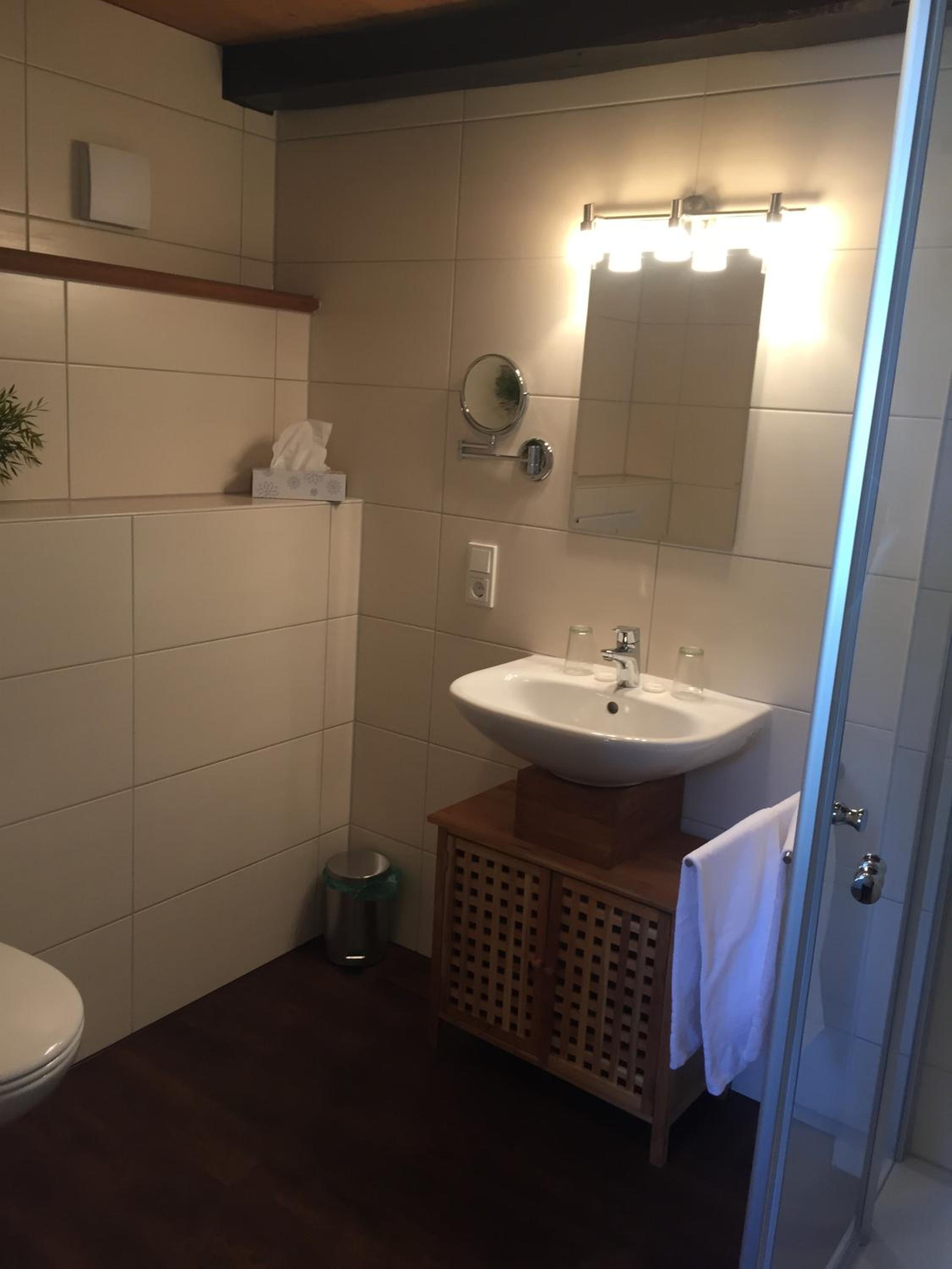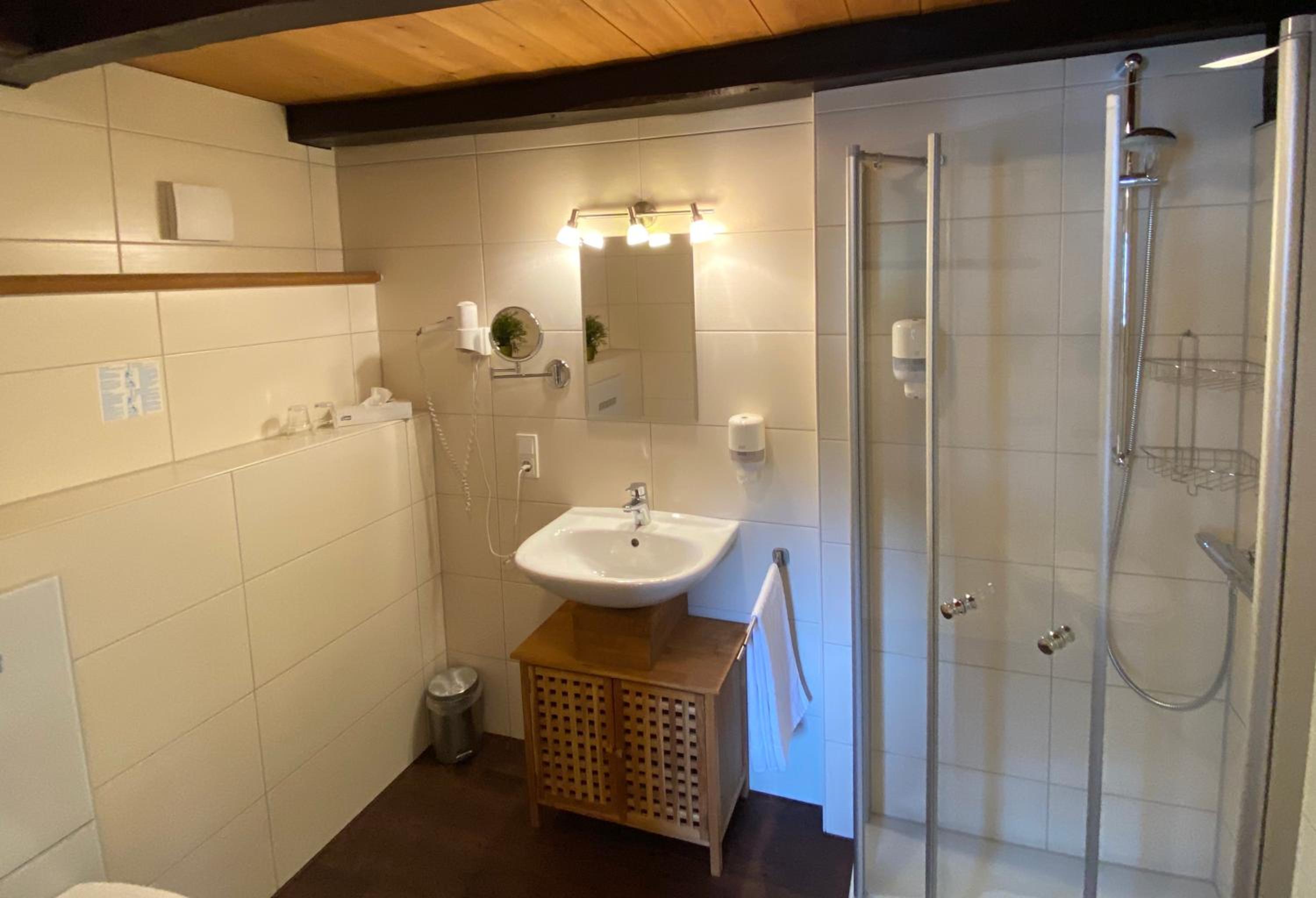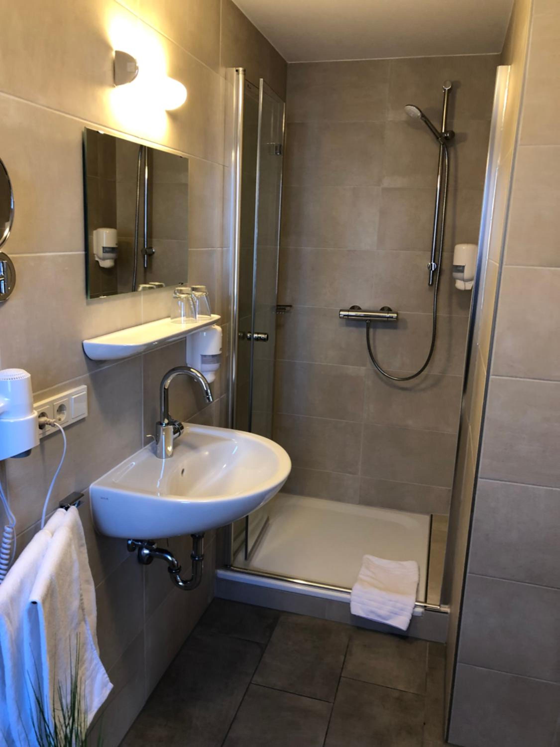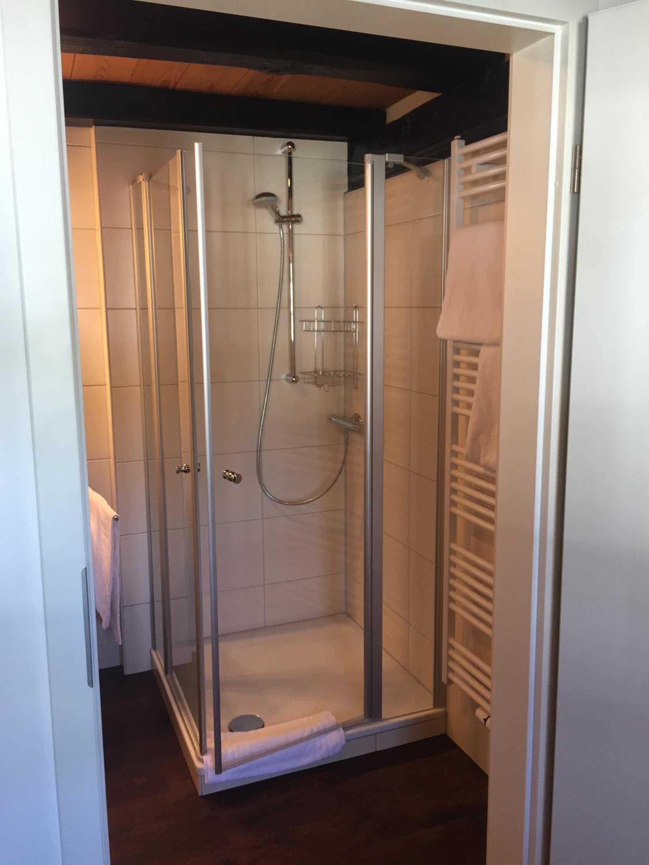 Das Zimmer war sauber, die Dusche einwandfrei ohne jegliche Schimmelecke. Die in die Jahre gekommene Einrichtung ist geschmackvoll. Das Frühstücksbuffet war gut sortiert.