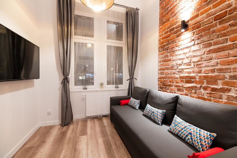 Bra område. Du kommer inte att behöva Tourist Card när du bor i det här området. Mellan Stare Miasto (gamla stan) och Kazmierz (Judiska området). Hotellrummen/lägenheterna är kanske inte helt anpassade för storväxta människor. Spårvagn direkt till Tauron Arena. Wi-Fi kunde ha varit bättre med en bättre router.