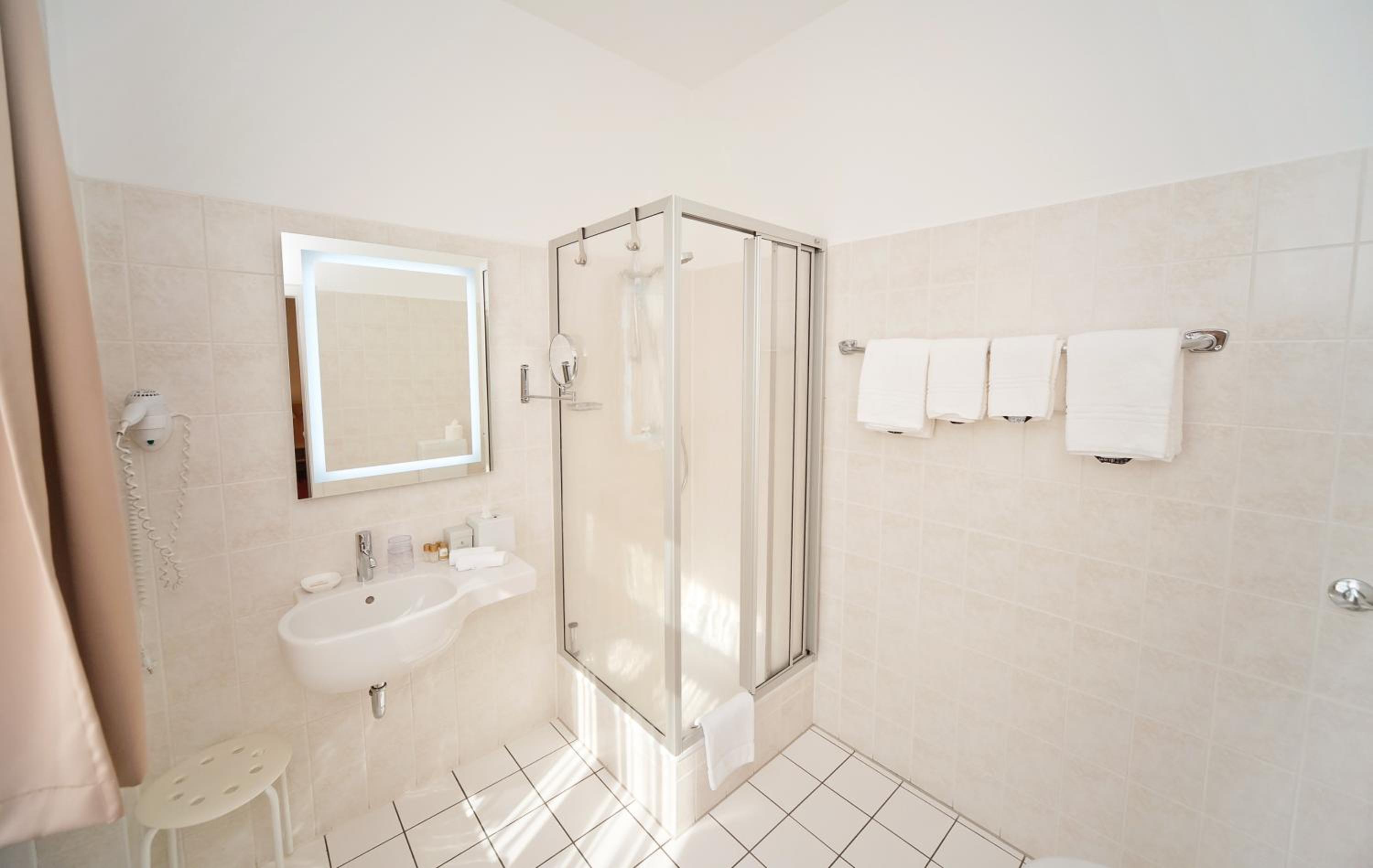 Check-In lief problemlos, das ruhig gelegene Zimmer war sauber und komfortabel, es ging um eine Übernachtung. Bad und Dusche waren auch ok, Wasserkocher und Tee auf dem Zimmer.
