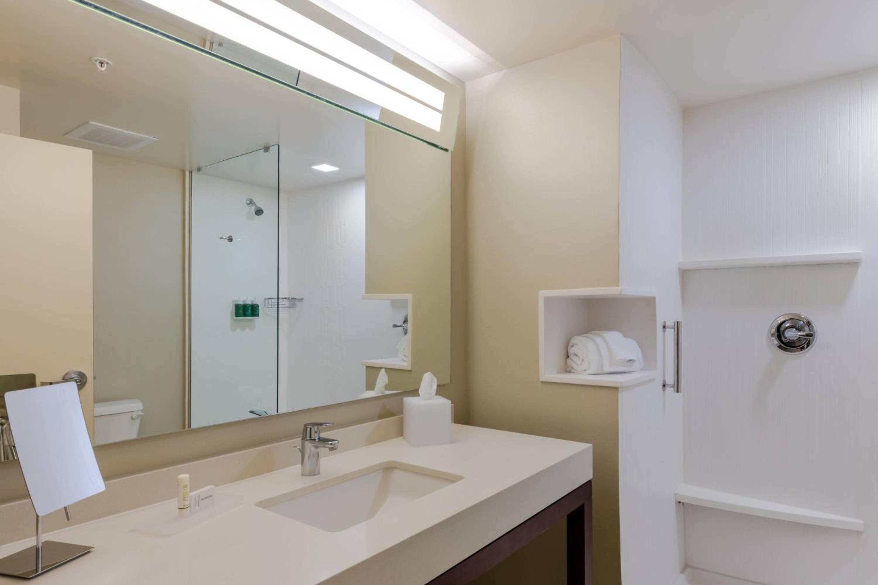 The lobby and common areas were clean, modern, and inviting, with plenty of cozy seating for relaxing or getting work done. My room was spotless, well-appointed, and incredibly comfortable. I especially appreciated the plush bedding, spacious bathroom, and thoughtful touches like plenty of outlets for charging devices.