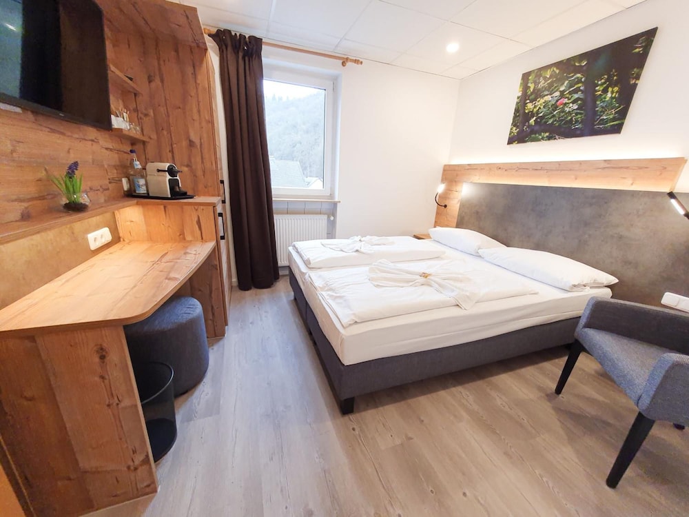 Das Zimmer mit Rheinblick war klein, aber prima. Das Bad wurde kürzlich renoviert. Das Internet funktionierte gut. Toll war, dass wir die Fahrräder in der Garage unterstellen konnten. Das Abendessen auf der Restaurantterasse mit Rheinblick war ausgezeichnet. Das Frühstück war prima.