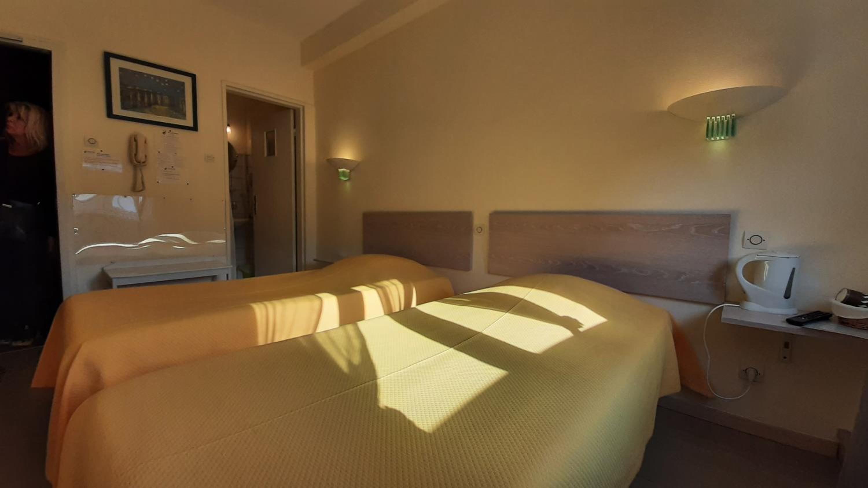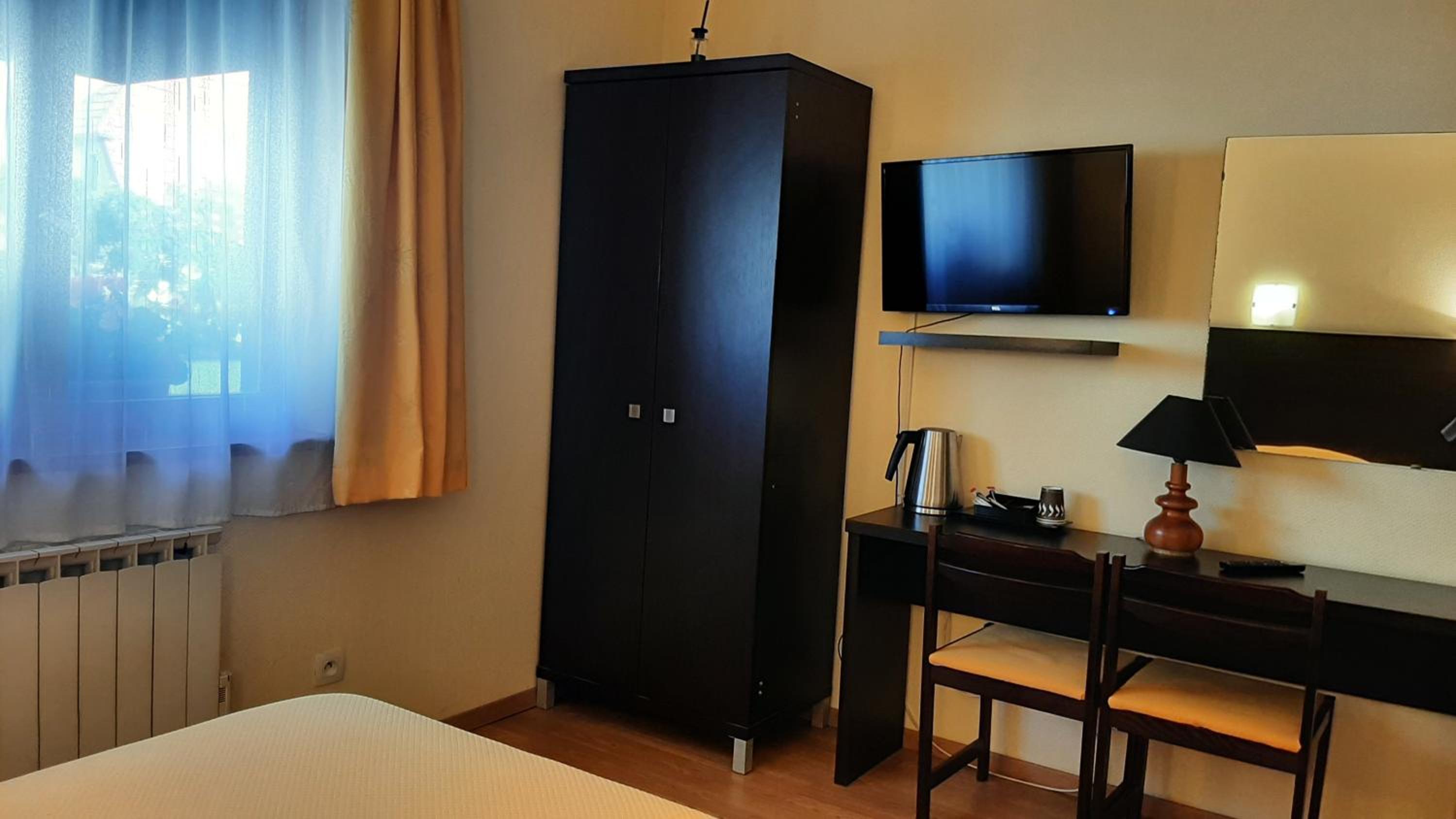 L'hotel è carino, e c'è la possibilità di mangiare al ristorante. Le stanze sono confortevoli. La pulizia è buona. Ci hanno dato una delle due stanze con letto matrimoniale, nonostante la prenotazione fosse con letti singoli (per noi meglio così).