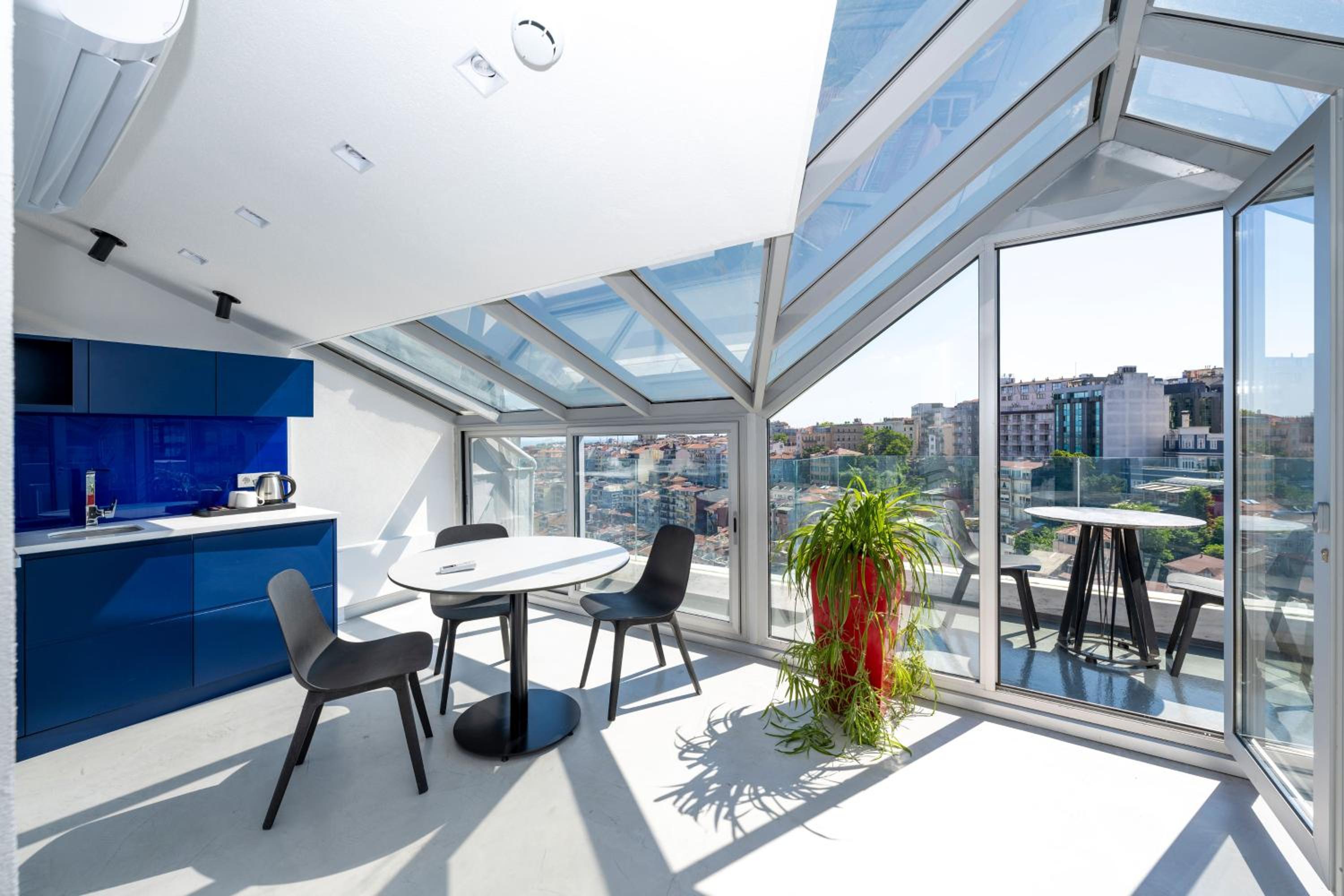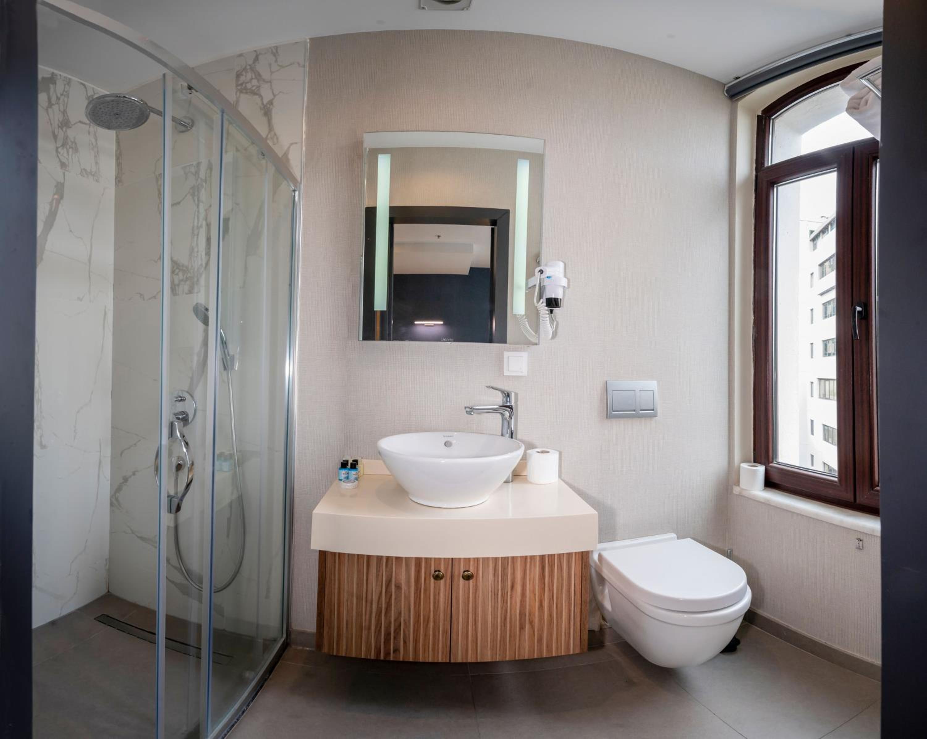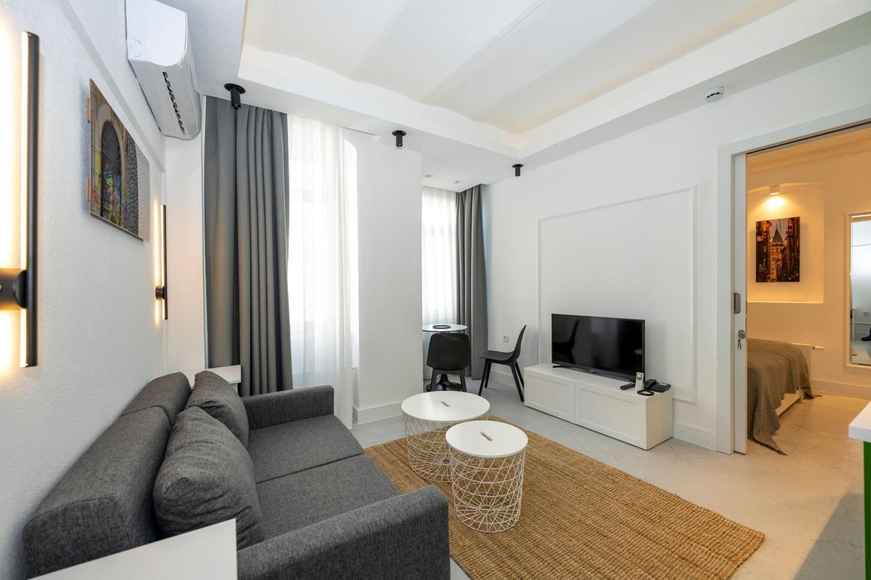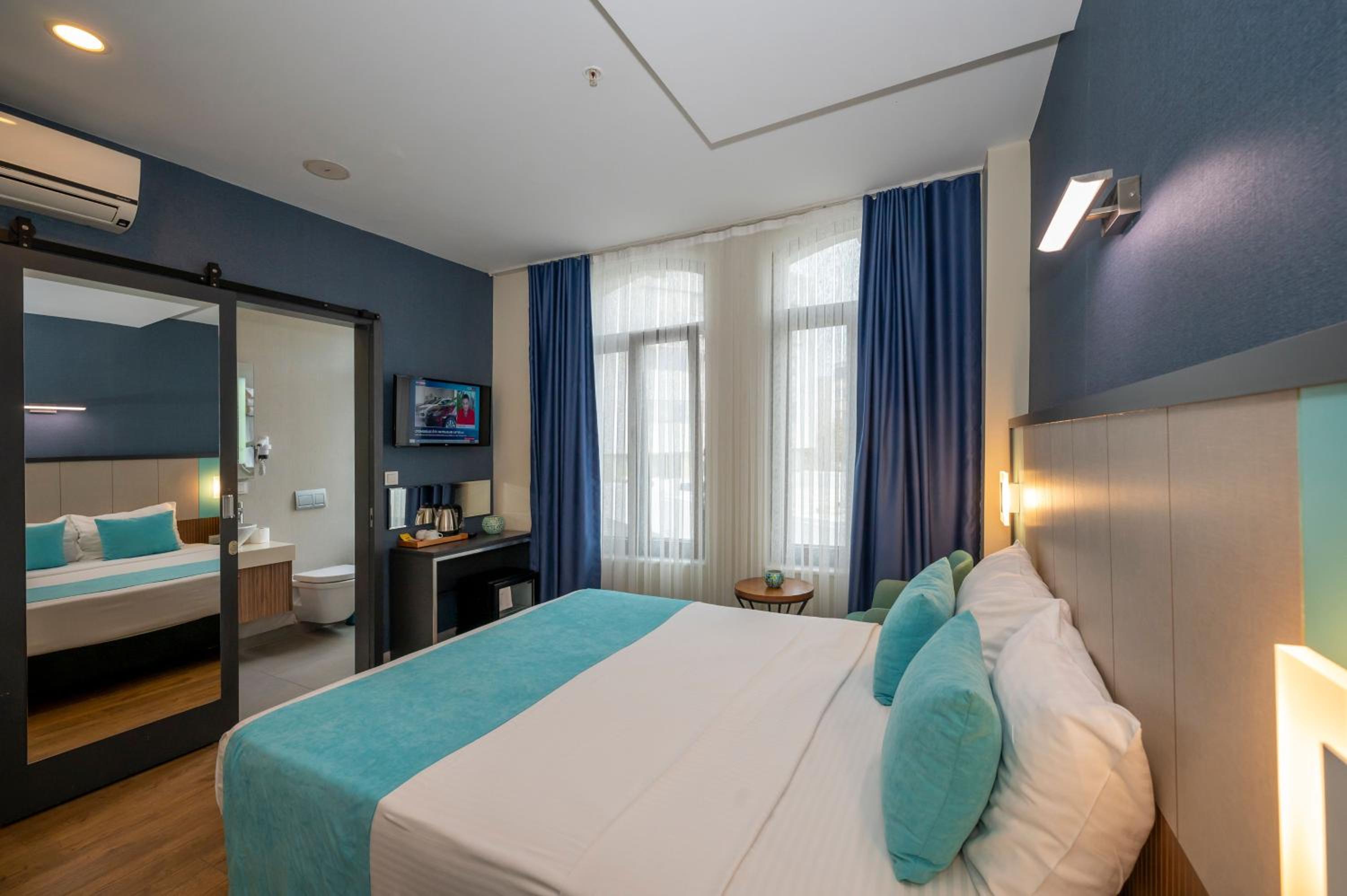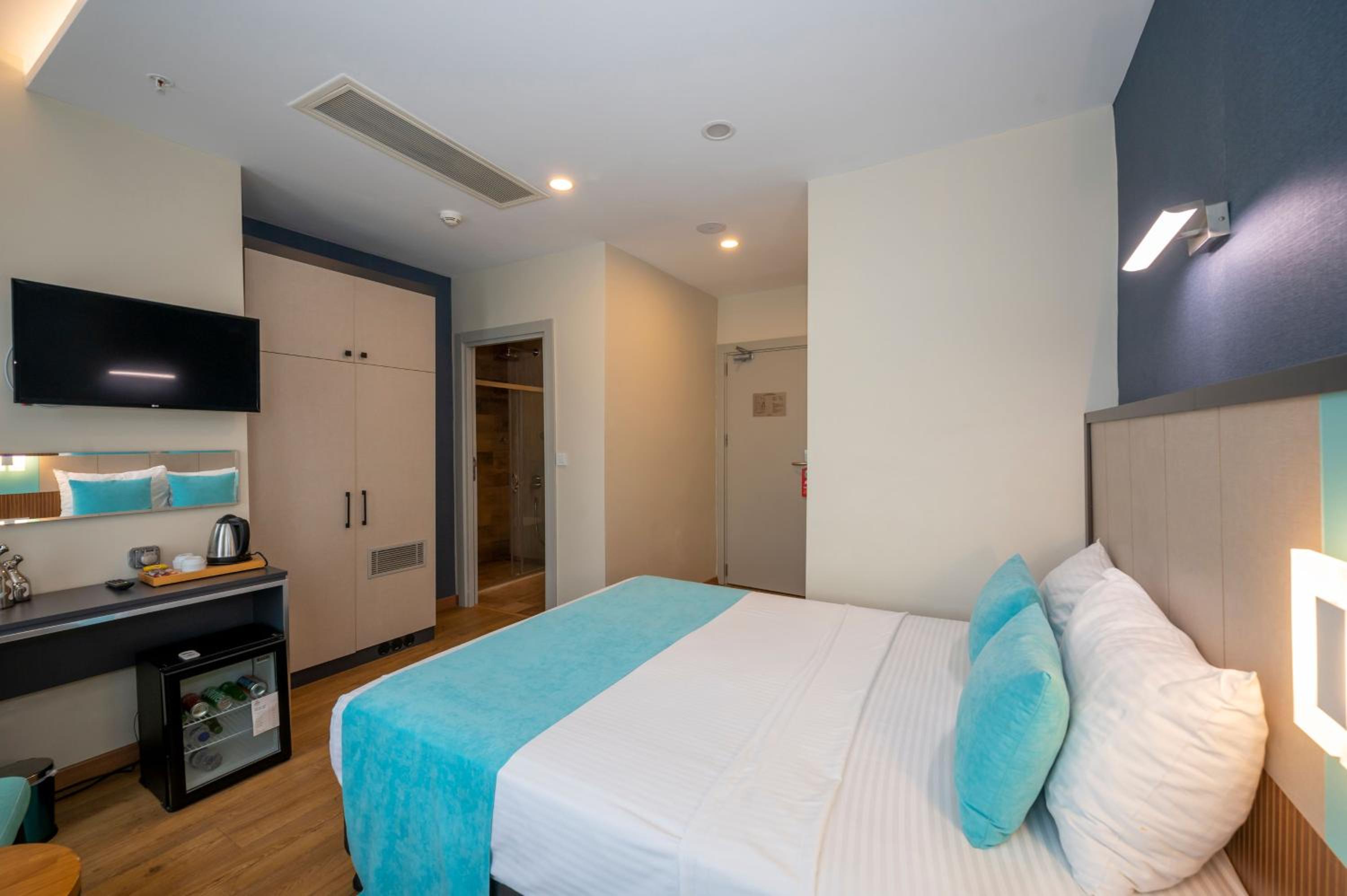 Each guest room at Juno Hotel Taksim is thoughtfully equipped with modern amenities including air conditioning, a flat-screen TV, and a private bathroom, ensuring a comfortable stay for all guests.