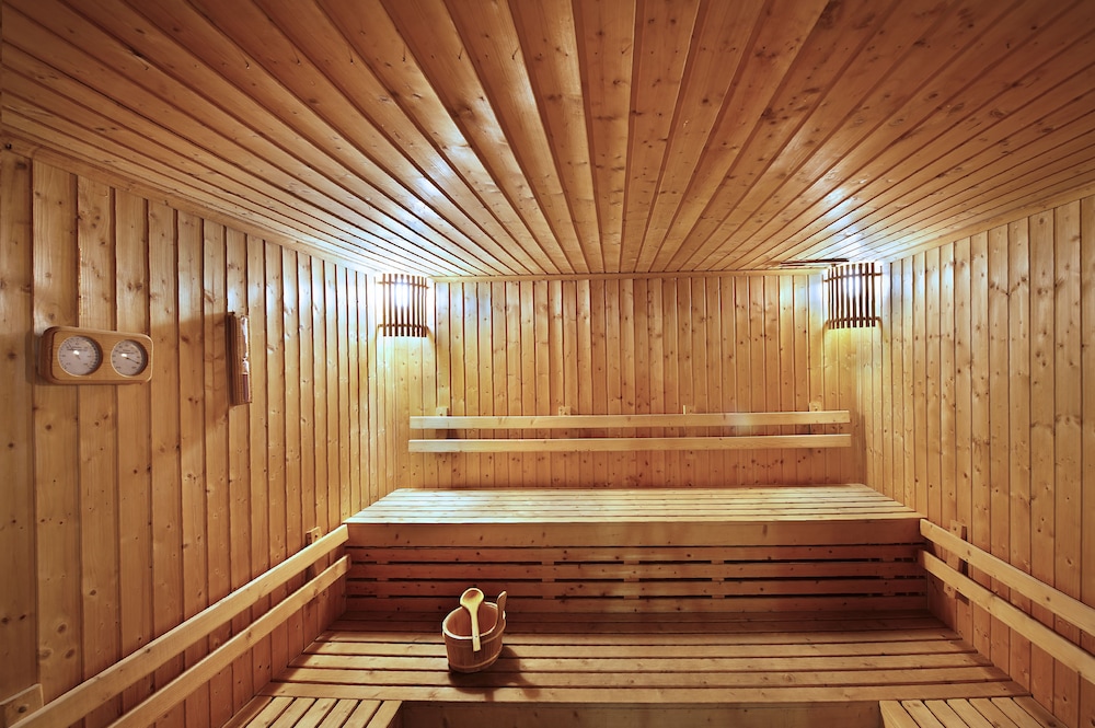 Enjoy the outdoor pool and sauna for relaxation during your stay.