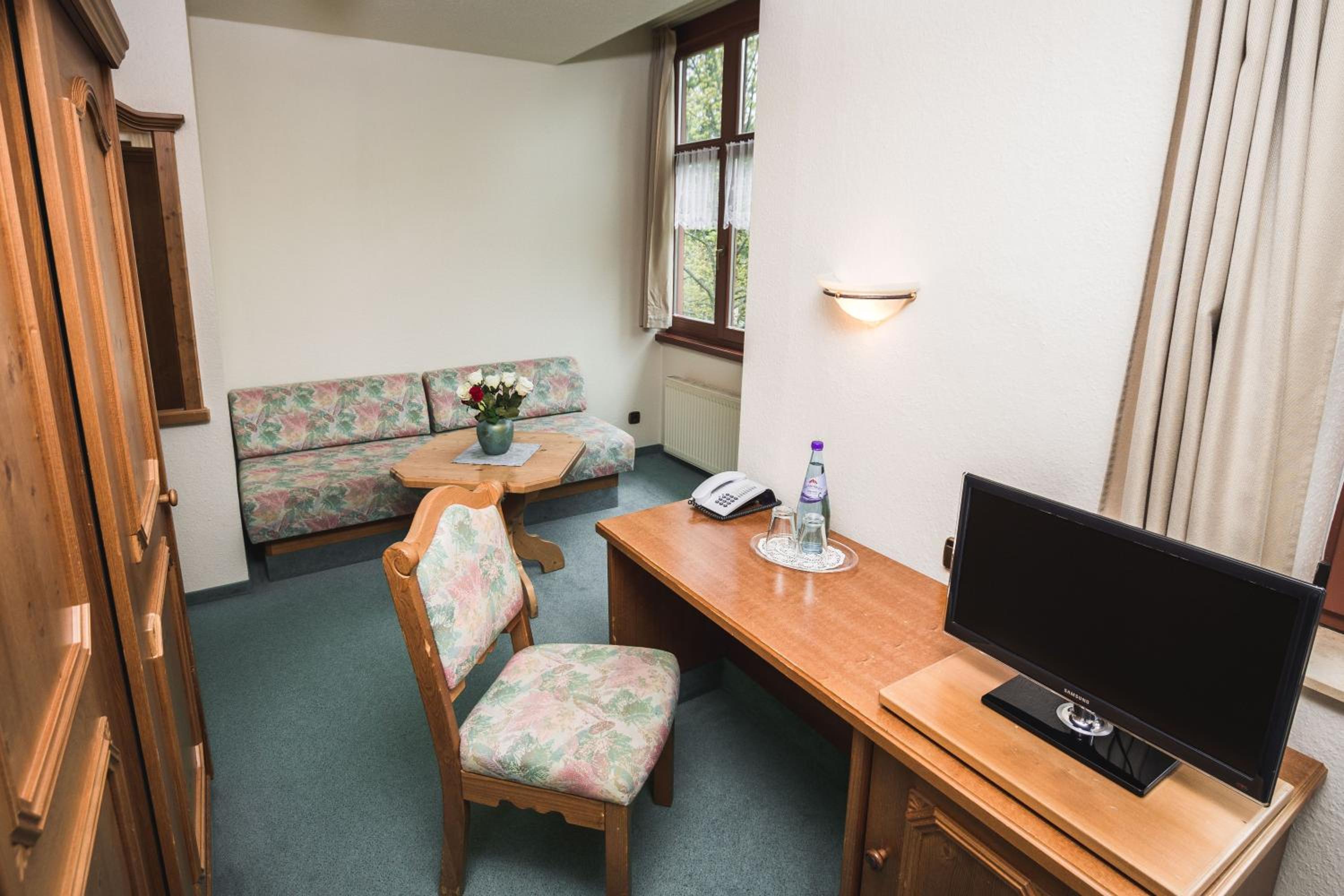 Das Hotel befindet sich in einem schönen Fachwerkhaus. Das Zimmer hatte eine sehr angenehme Größe und war schön eingerichtet. Auch das Essen im Restaurant und das Frühstück waren lecker.
