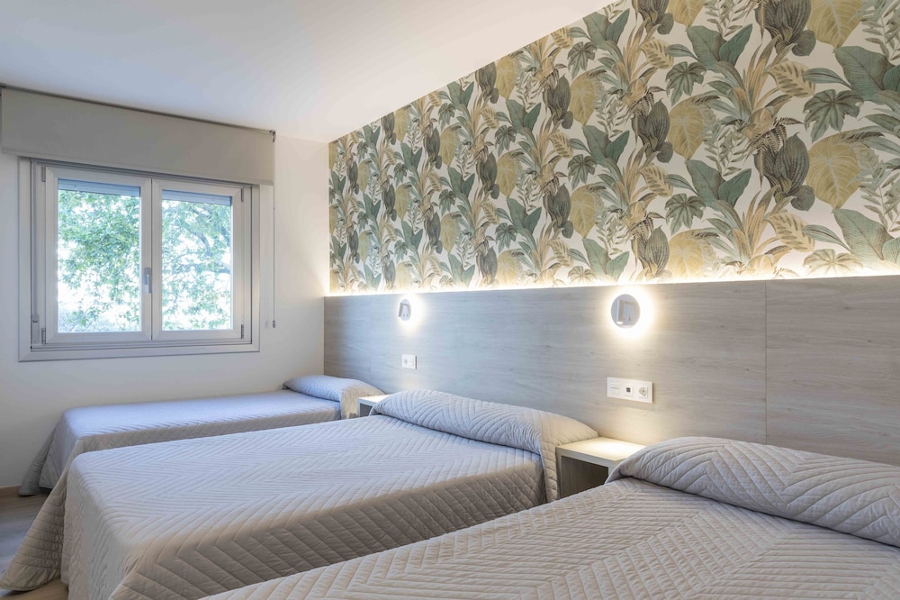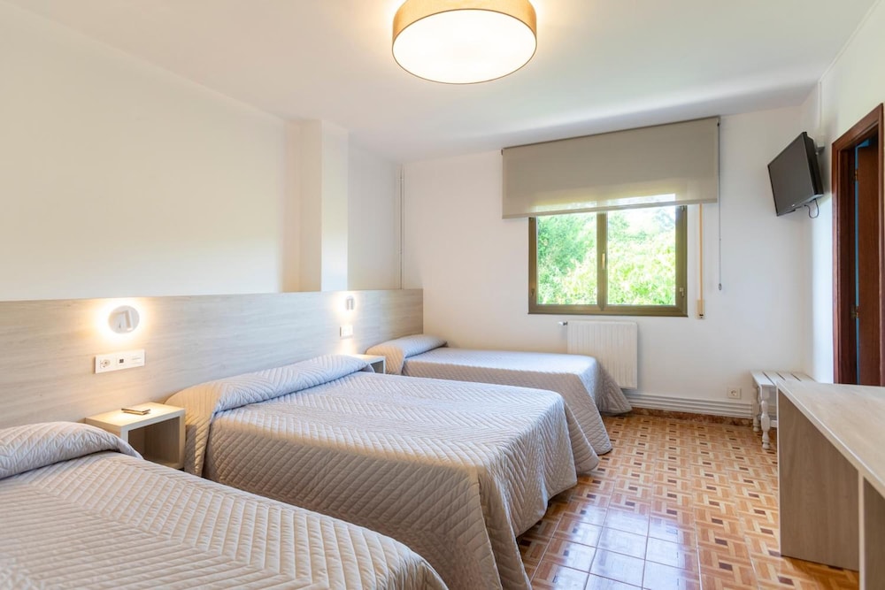 Habitacion muy pequeña con 3 camas tambien bastante pequeñas. Tanto el mobiliario como las ventanas y el lavabo son de los años 80 como minimo. Entiendo q hay algunas reformadas que salen en las fotos pero no tuvimos la suerte. Desayuno justo pero aceptable. Pero la habitacion excesivamente ochentera. Igual hay q ir renovandolo.
