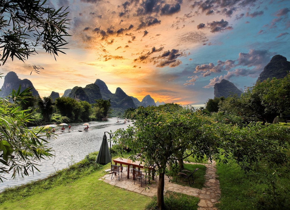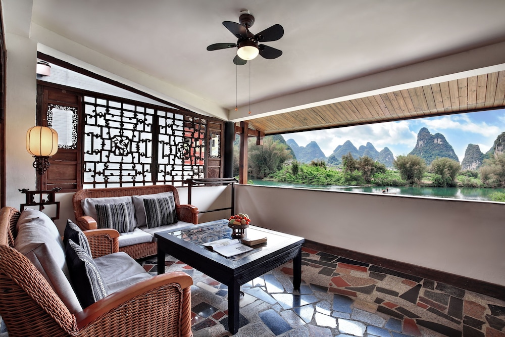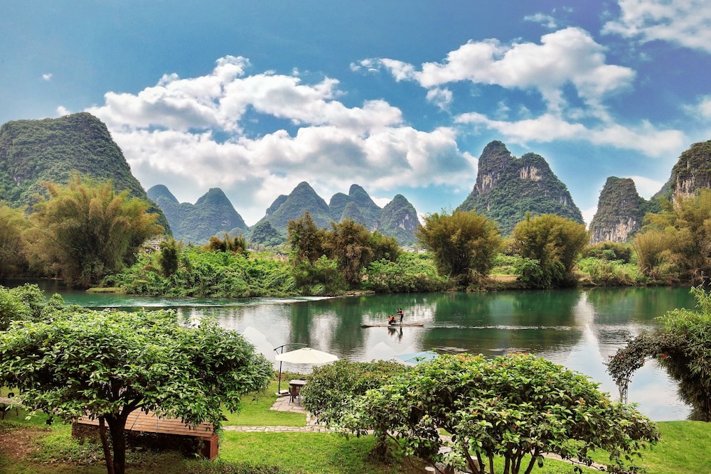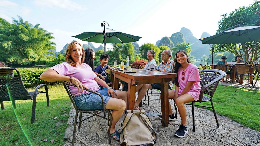 Staff are exceptional. They are always smiling and welcoming. All speak English and very helpful. The hotel approx 5km from Yangshuo town overlooks the stunning river and hills. The complimentary hotel vehicle goes into town three times per day or there are free bicycles with plenty of places to visit. Food is very good and reasonably priced. A lovely relaxing place to stay. Highly recommended if you want away from the hustle of the city.