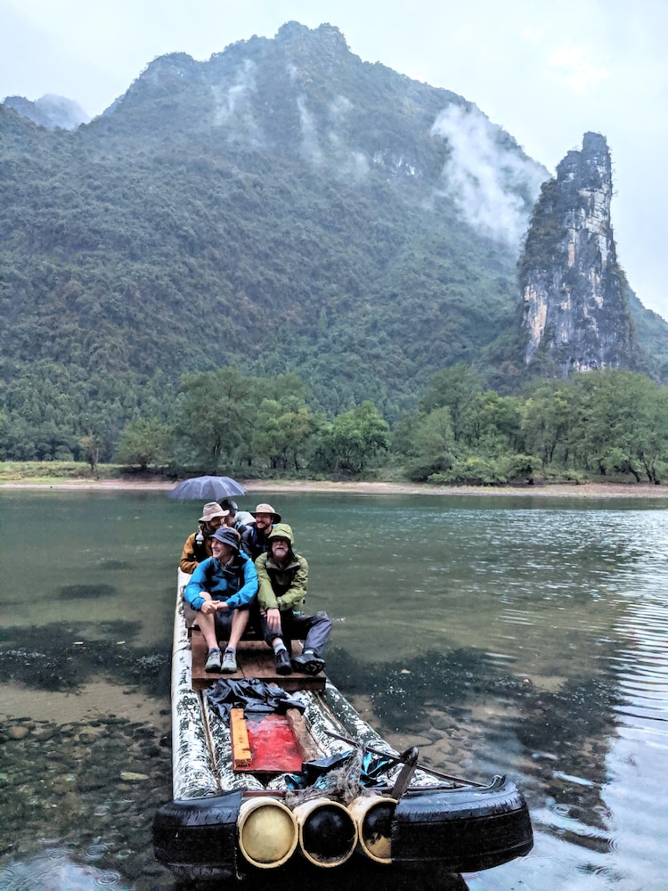 Yangshuo City has become a big tourist hub (mainly Chinese tourists). The Yangshuo Mountain Retreat is a short taxi (electric scooter ride) to Yangshuo and the surrounding attractions, but sits on a quiet bend of the picturesque Yulong river (almost rivals the Li River Karst tower area in beauty and is a lot less busy). During the day a number of the bamboo rafts with one of two folks floating down the river go by. A night their grass riverfront restaurant is bucolic.