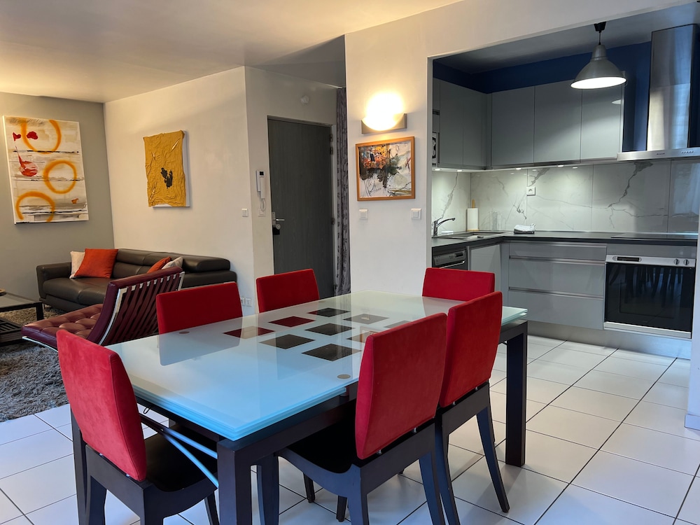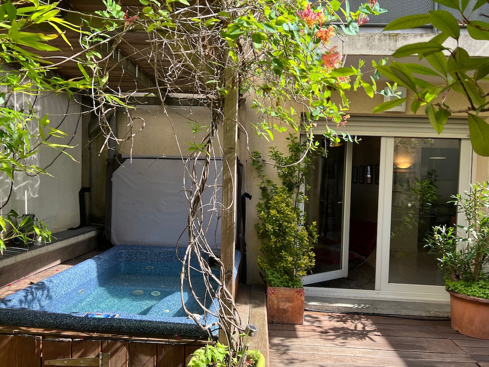 Claire was beyond helpful. She figured out the metro stops for us and provided free parking since we DID NOT want to drive in Paris. The beds and sofa bed were comfy. The shower was hot and the towels were soft. The kitchen was well equipped. The balcony and hot tub were wonderful! Claire asked what time to bring breakfast and showed up with a basket of fruits, jellies, fresh baked goods, and more. We felt so spoiled. The neighborhood was safe and we walked around without fear. We recommend Claire's above all others. She also rents out a five bedroom apartment in the same building!