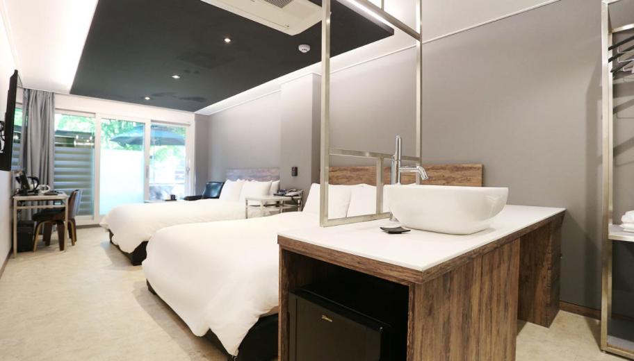 호텔이 아니고 모텔임 층간 방음 잘 되지 않고 바디워시 샴푸 있기는 하나 좋은 샴푸는 아님 개인적으로 구비 하실 분들은 구비해가셨으면 함! 하지만 이 가격 이위치 체크아웃 시간 11시가 아닌 12시는 너무 좋았음.