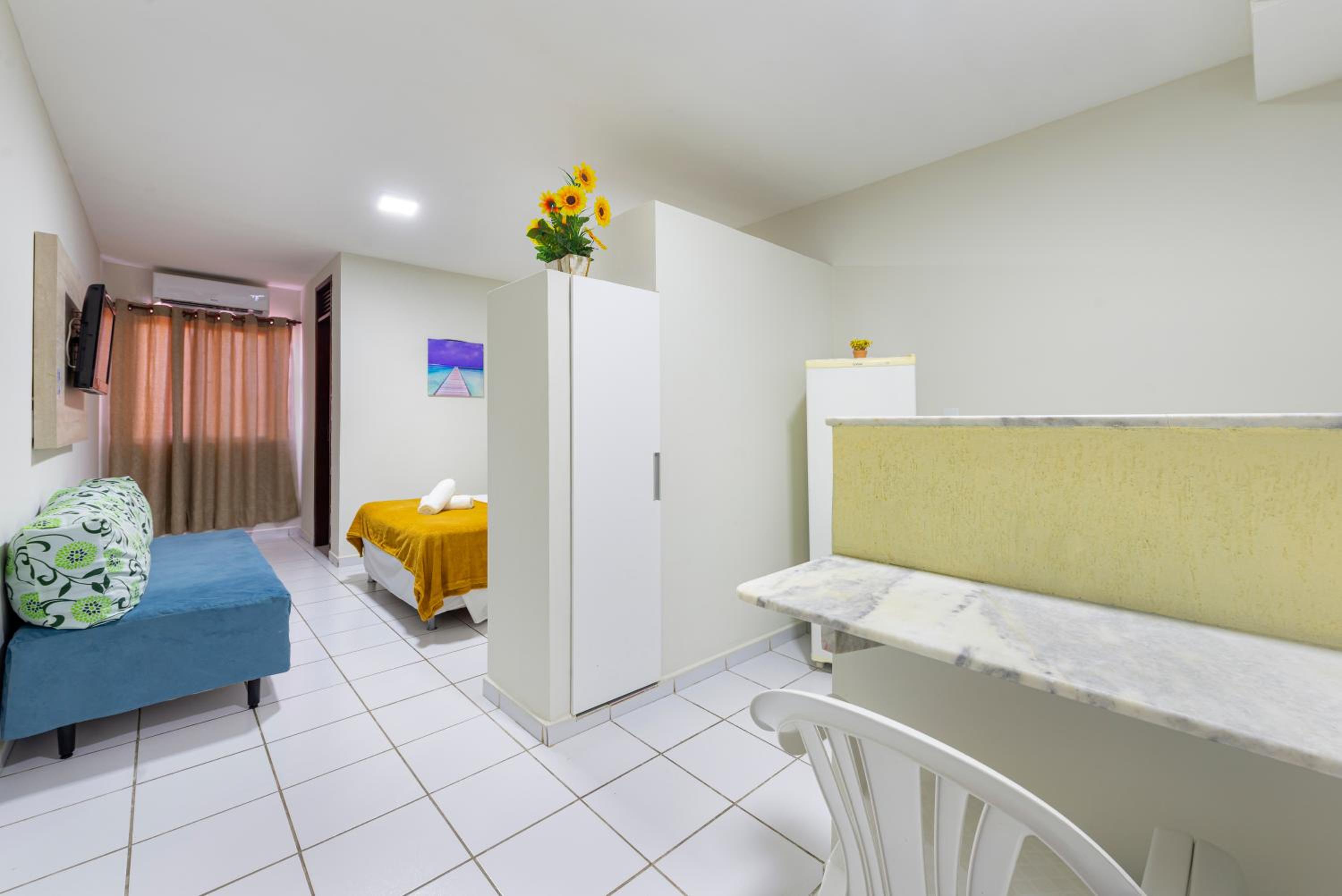 Instalações precisando de reparos, porta inchada, banheiro nao tinha ducha, vazao do chuveiro pessima, inclusive bem trabalhoso de “acertar” a temperatura. A porta do box abria para dentro, o que dificultava a entrada e saída da area do banho (que era bem pequena). A cama de casal eram duas de solteiro juntas. Fomos com nosso filho pequeno e tivemos que rearrumar as camas, porque a cama ficava separada por uma “parede”, entao atentem a isso quando for reservar com filho pequeno. Ah, o elevador estava sempre com defeito!