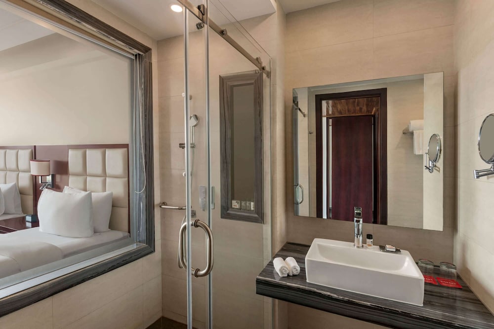 The toilet was miserable and unhygienic, with no cleanliness at all, broken flooring, filthy curtains, and plaster literally peeling off the ceiling. It felt more like a rundown lodge than an international chain property. To add to the shock, the room key was a cheap farzi card with no Ramada logo on it — making me doubt whether this was even a genuine Ramada hotel.