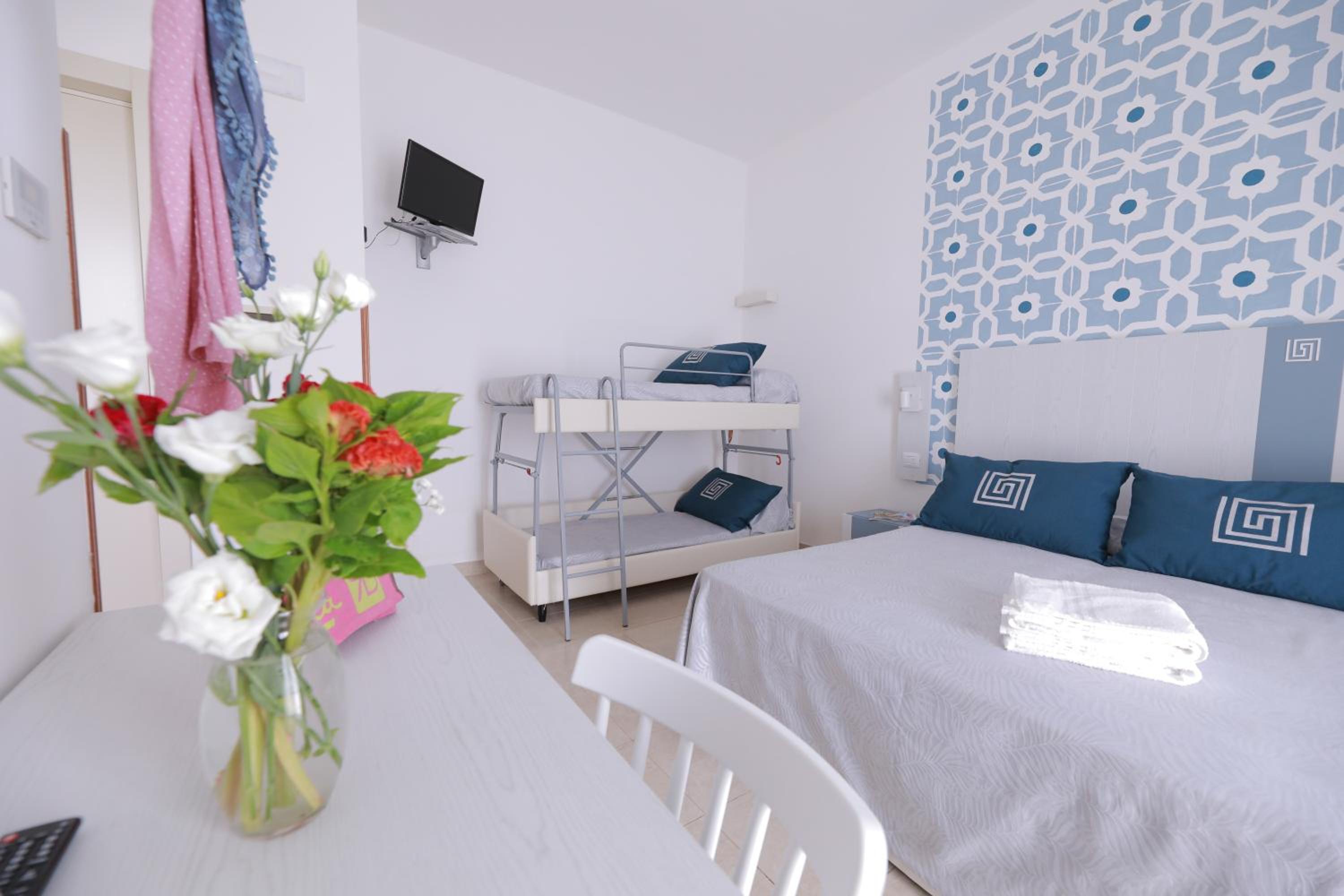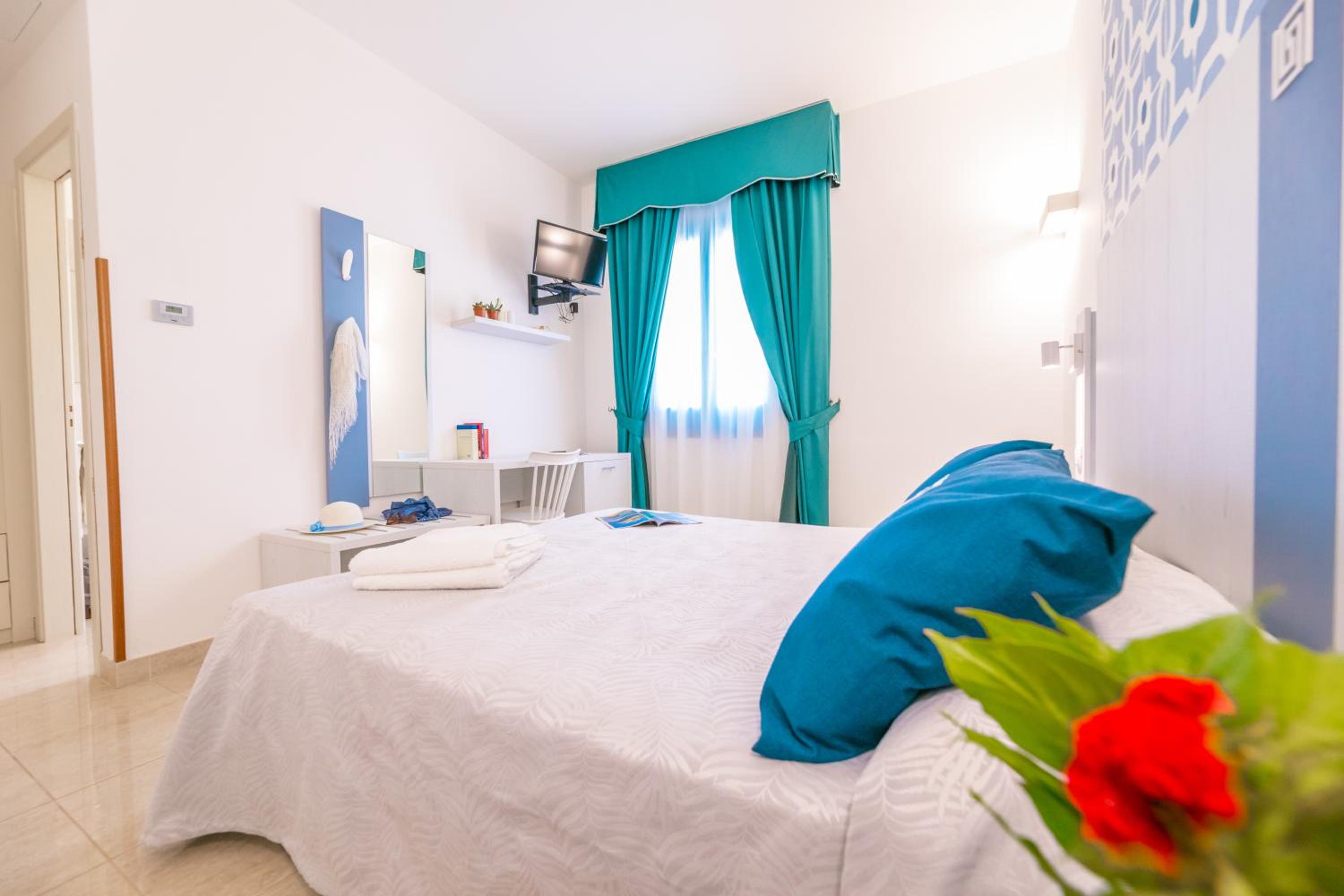 Location proprio accanto al mare, piscina disponibile per gli ospiti, colazione ottima e abbondante.