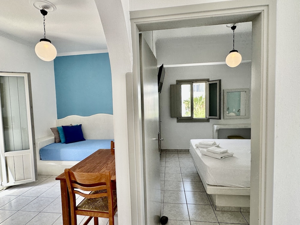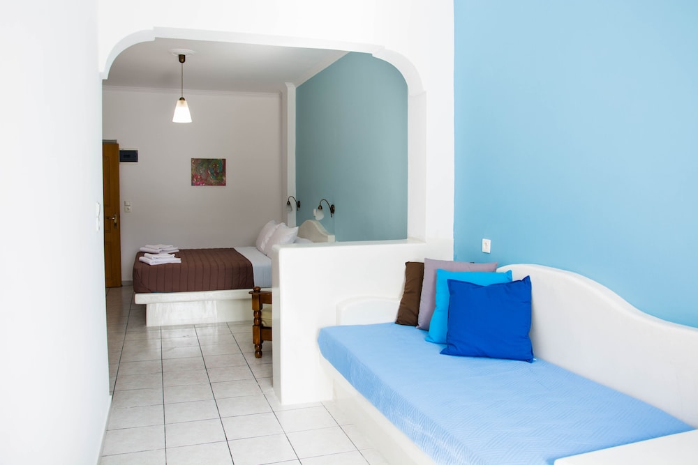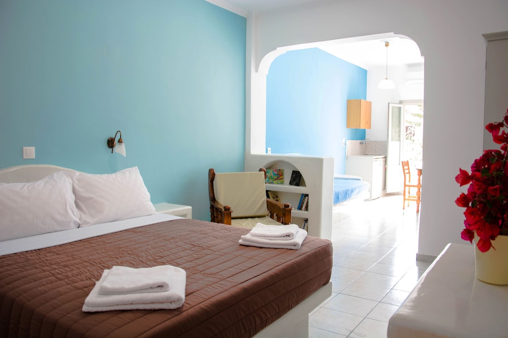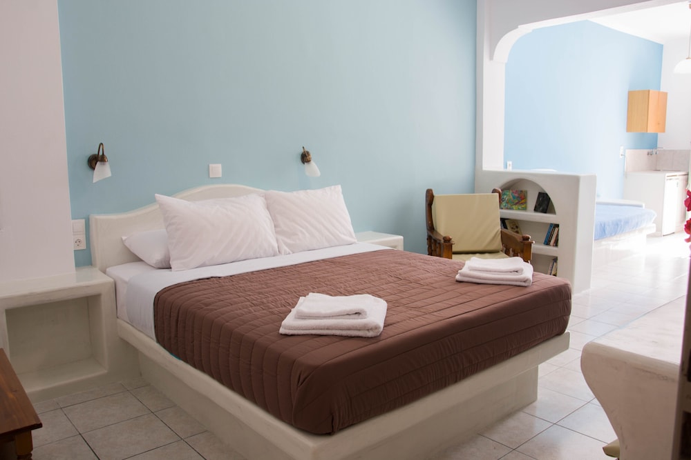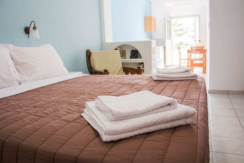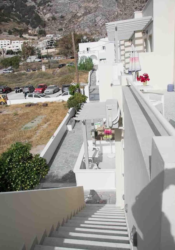 Very clean, helpful, courteous & knowledgeable staff. Convenient to the mini-market, amazing bakery, bus stop and many restaurants and bars along the Kamari Beach stip. Side balcony allows for peaceful and private coffee/wine breaks while staring at the Sea. The Sail Inn is also at the foot of Ancient Thira steps if you want a fitness challenge. Ask for a room on the 1st floor if you can't manage steps - no elevator but not many steps either.
